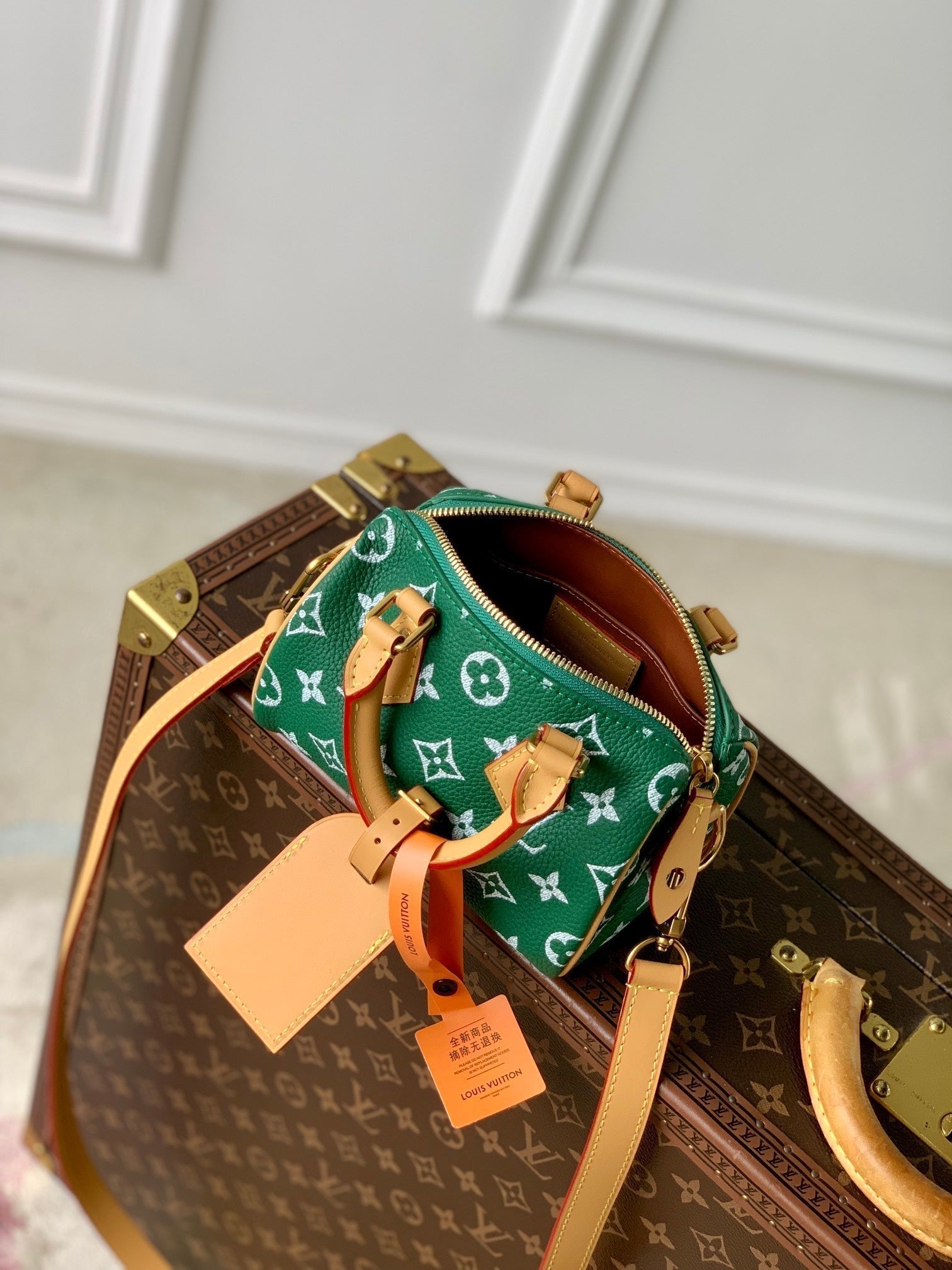speedy p9 bandouliere 18cm green calfskin
