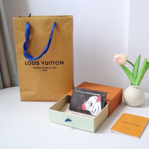 LV x SY Dog Card Holder Brown Red Monogram Canvas 204658