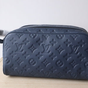LV Dopp Kit Toiletry Bag Navy Blue Monogram Calfskin & Cowhide247596
