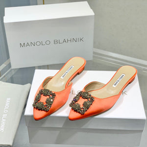 Manolo Buckle Flast Mules Orange Silk 327520