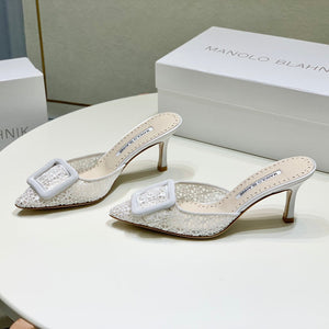 Manolo Buckle Mules 7cm White Silk 208019