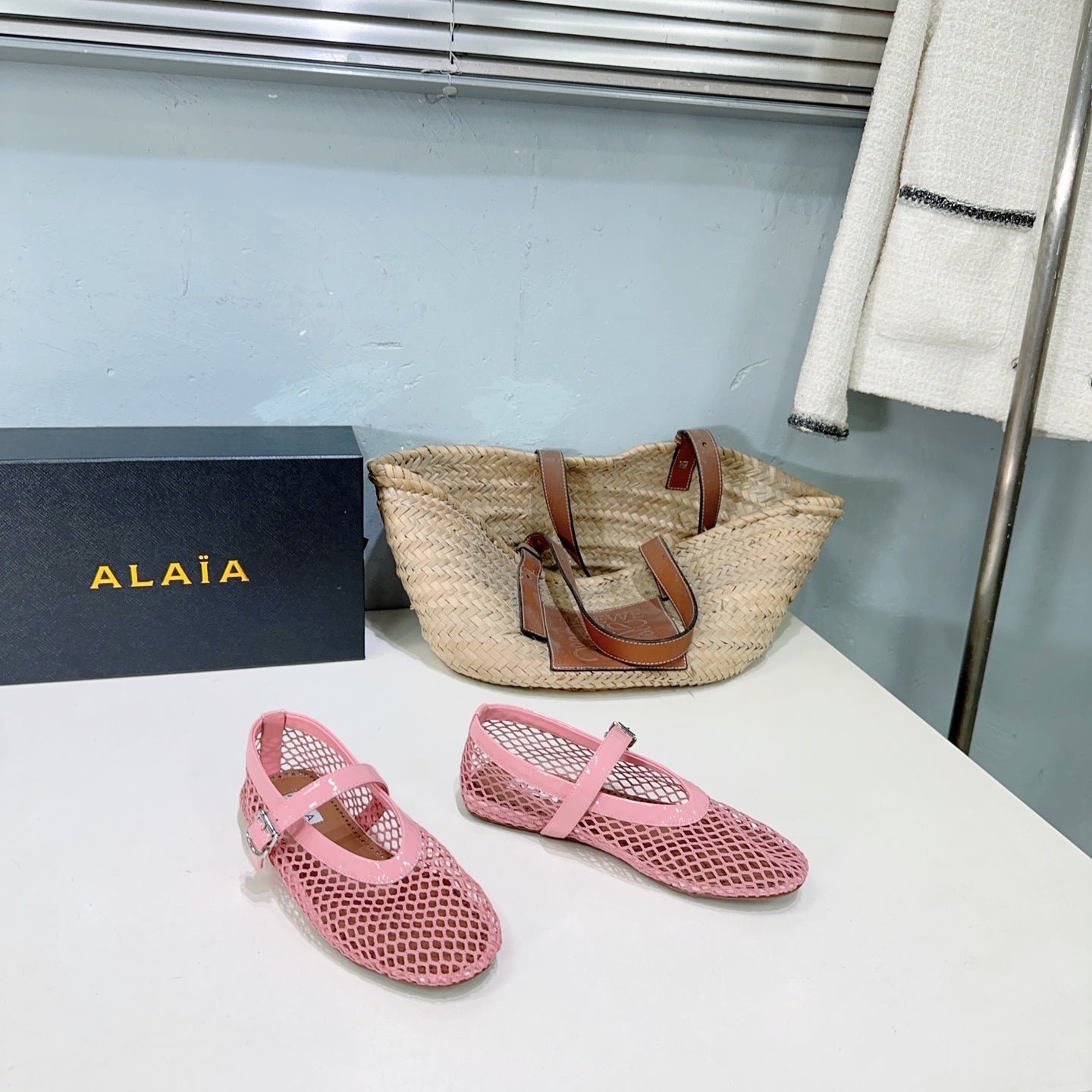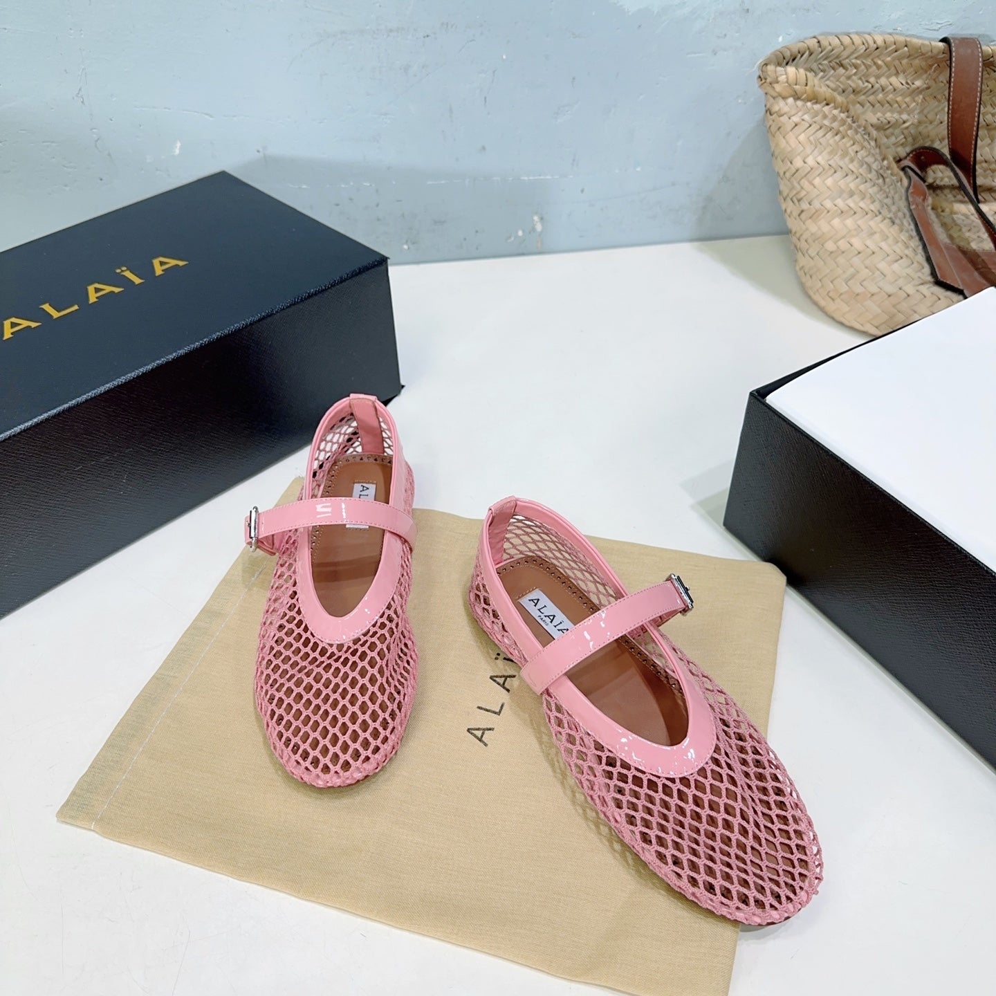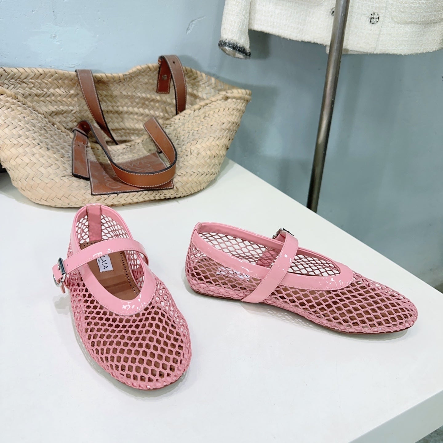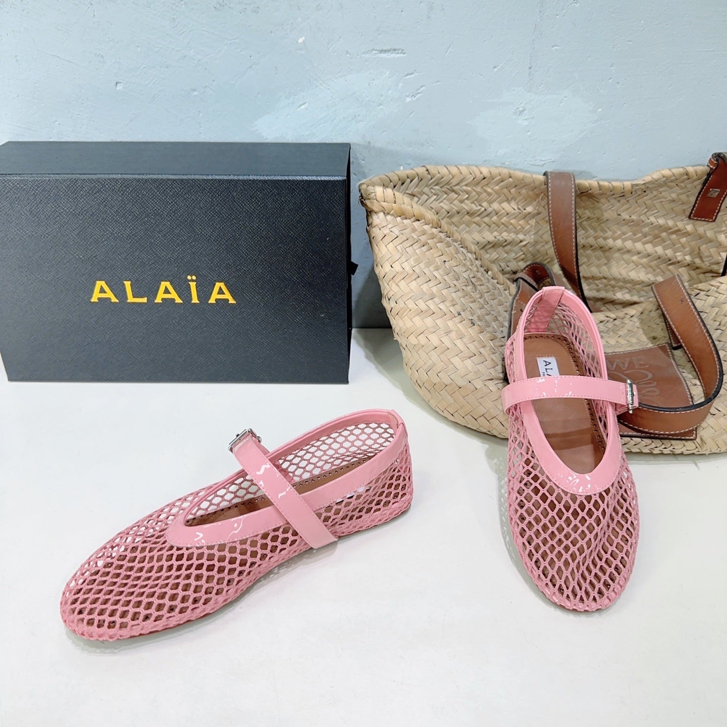 Alaia 25 Laminated Fishnet Ballet Flats Pink Lambskin 241053