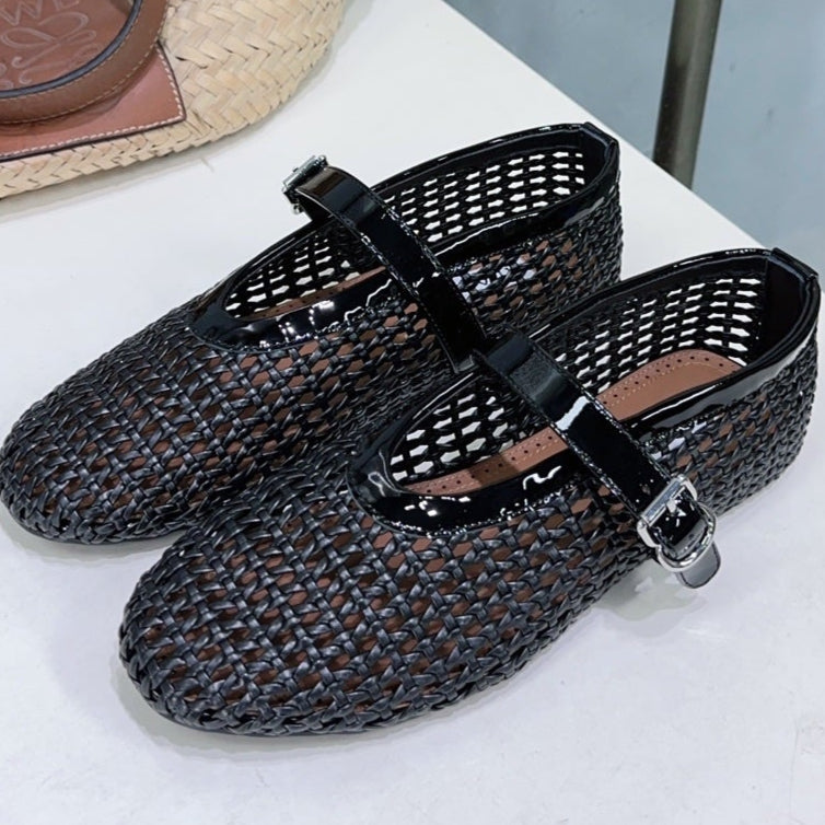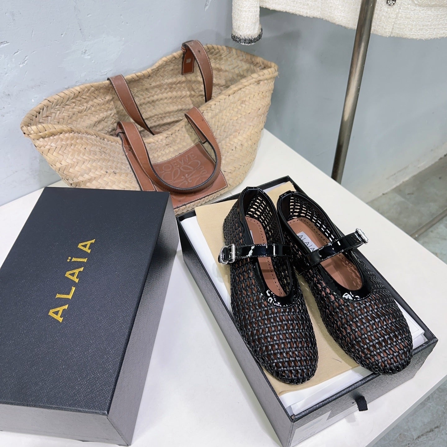 Alaia 25 Marry Janes Ballet Flats Black Wool Sheepskin 300453