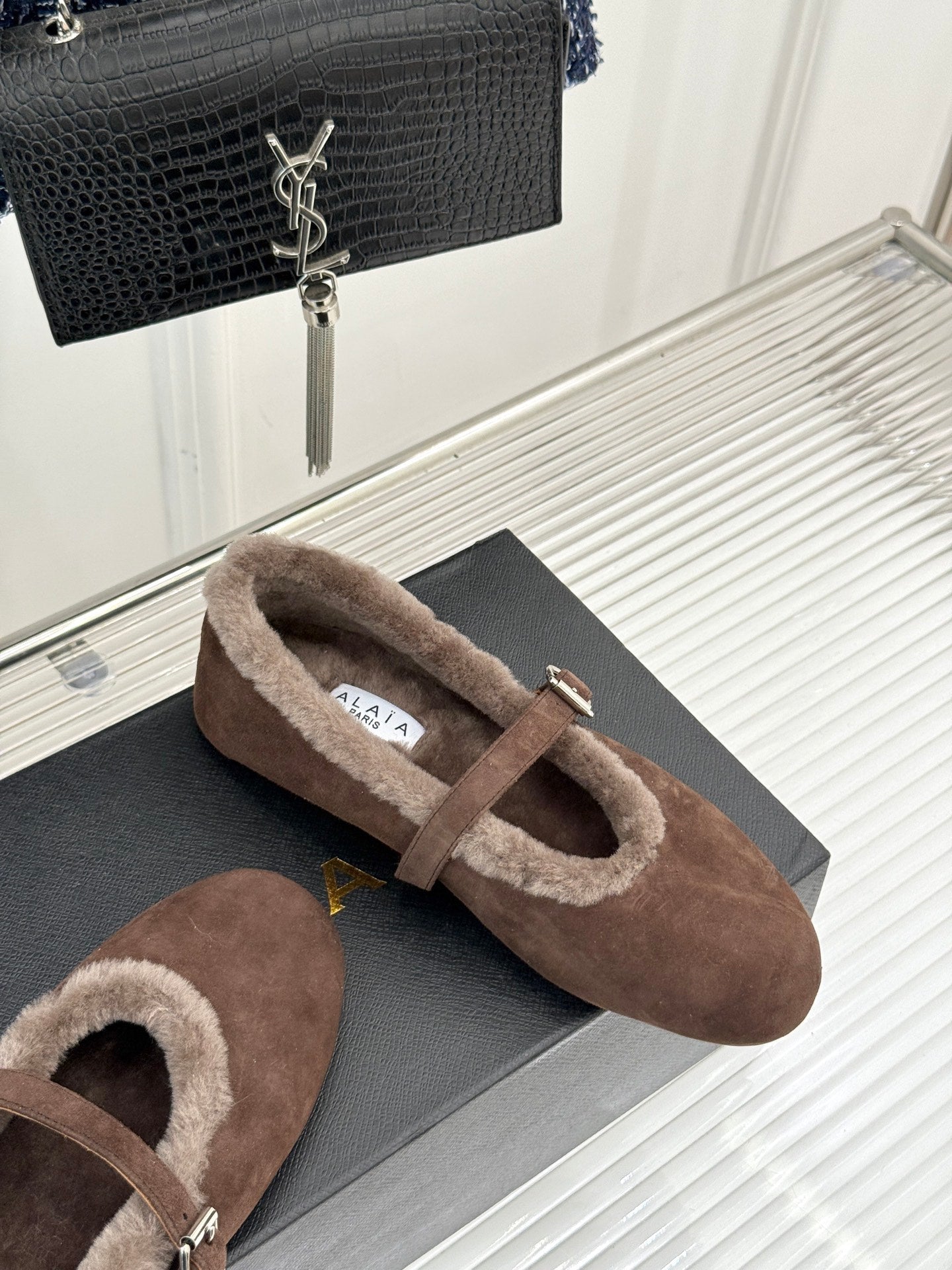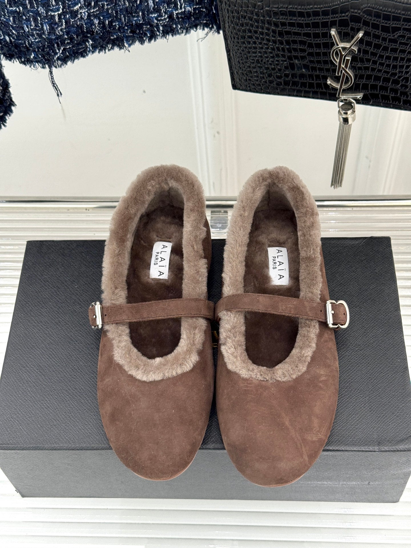 Alaia 25WF Mary Jane chocolate brown suede wool 472224