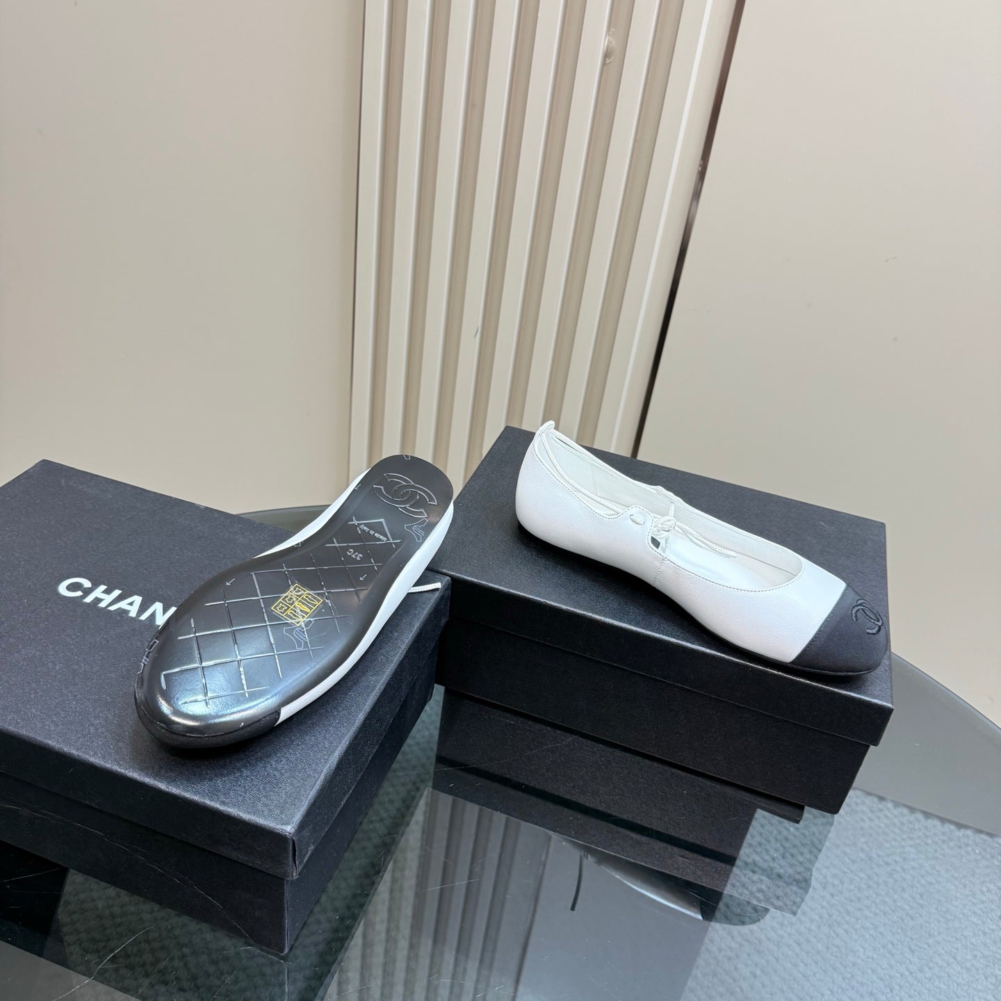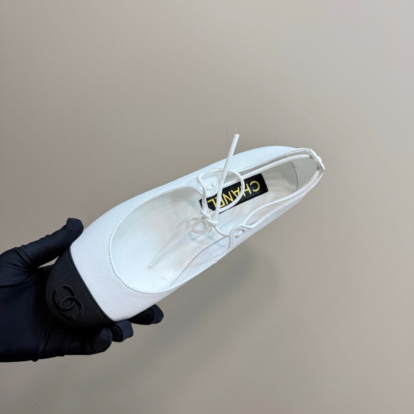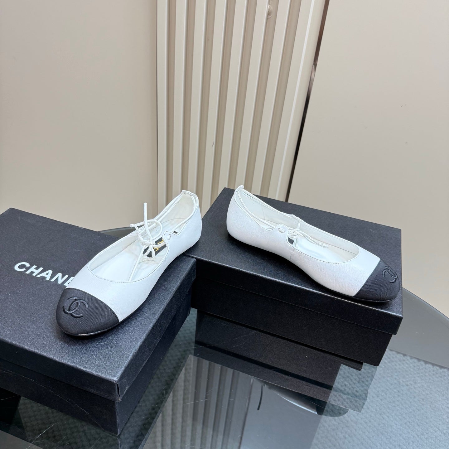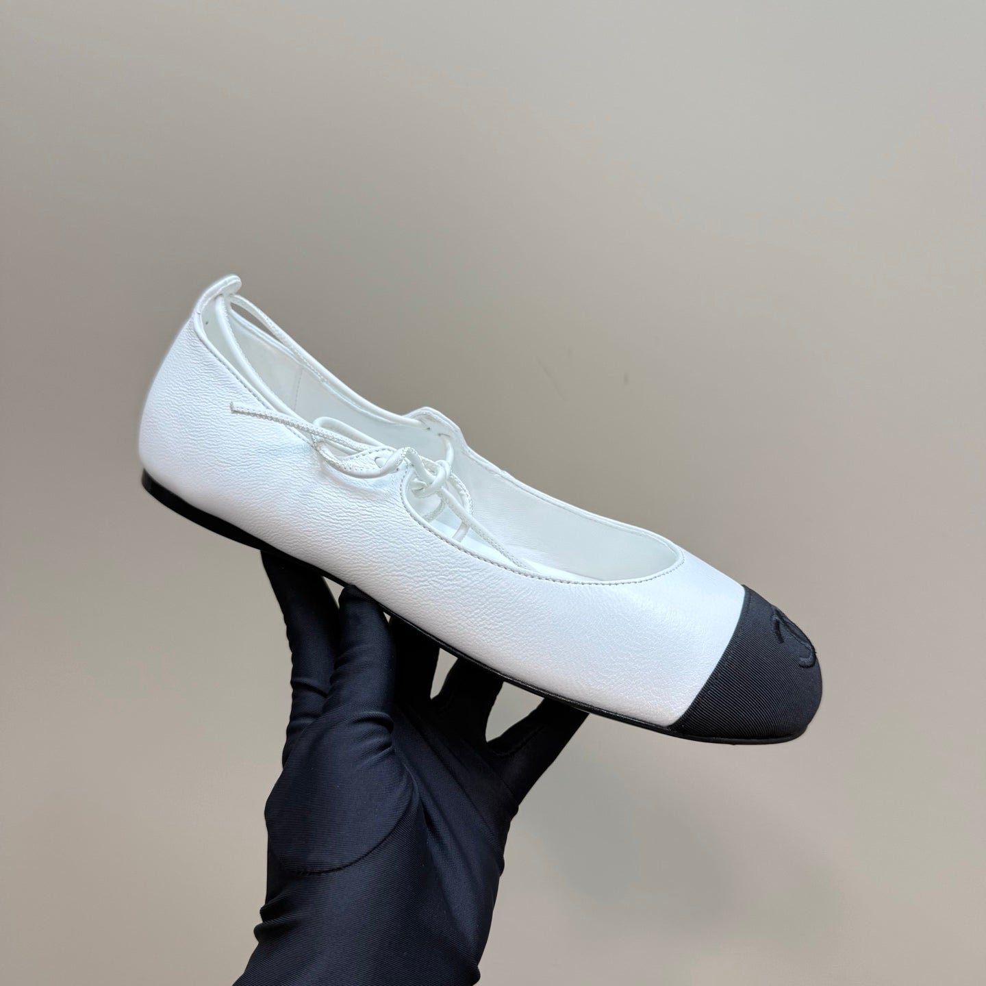 CC 25 Mary Jane Flat White Leather with Fabric 239409