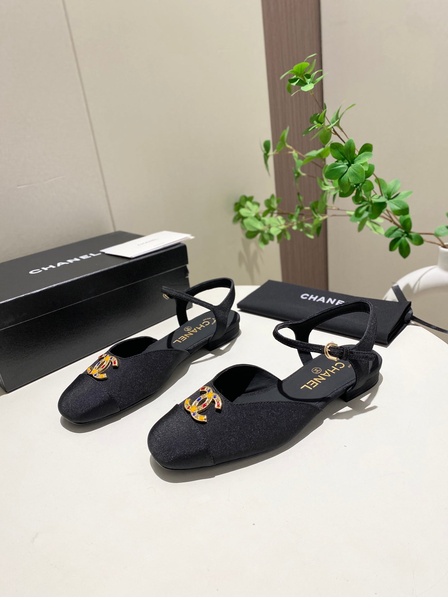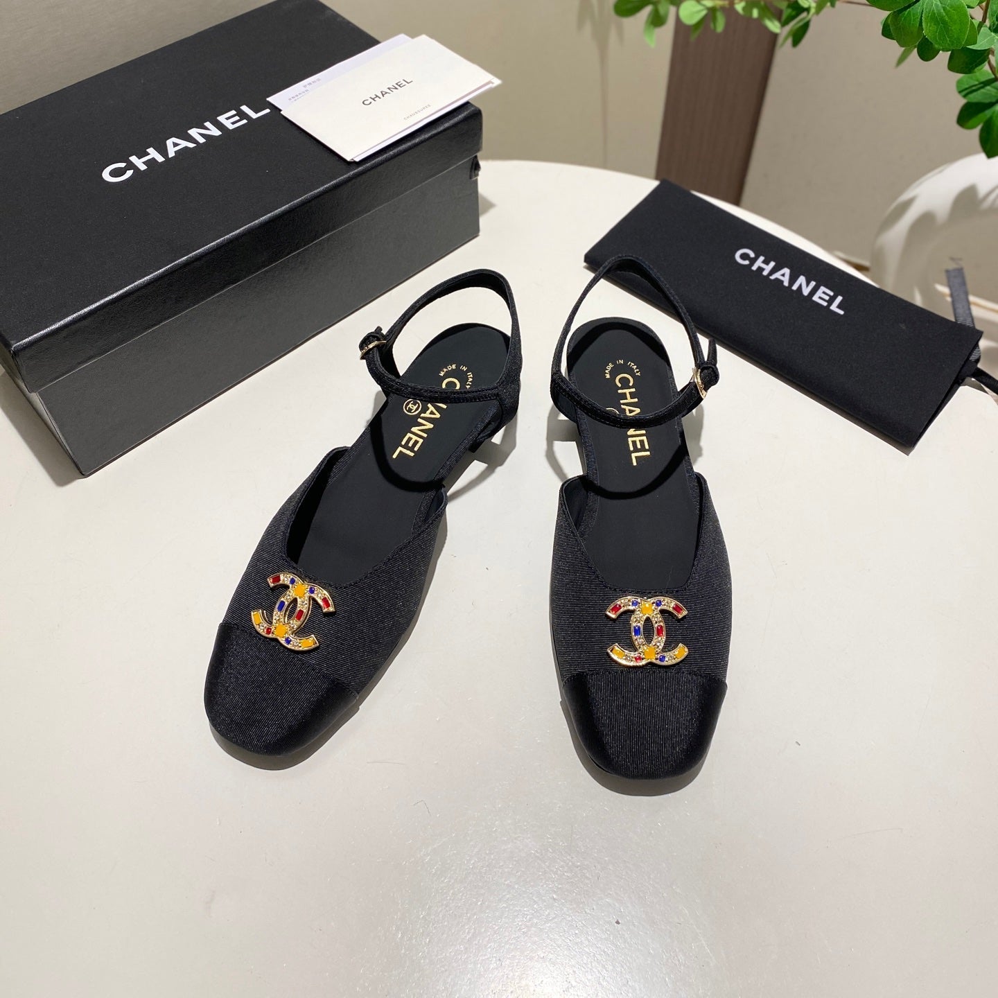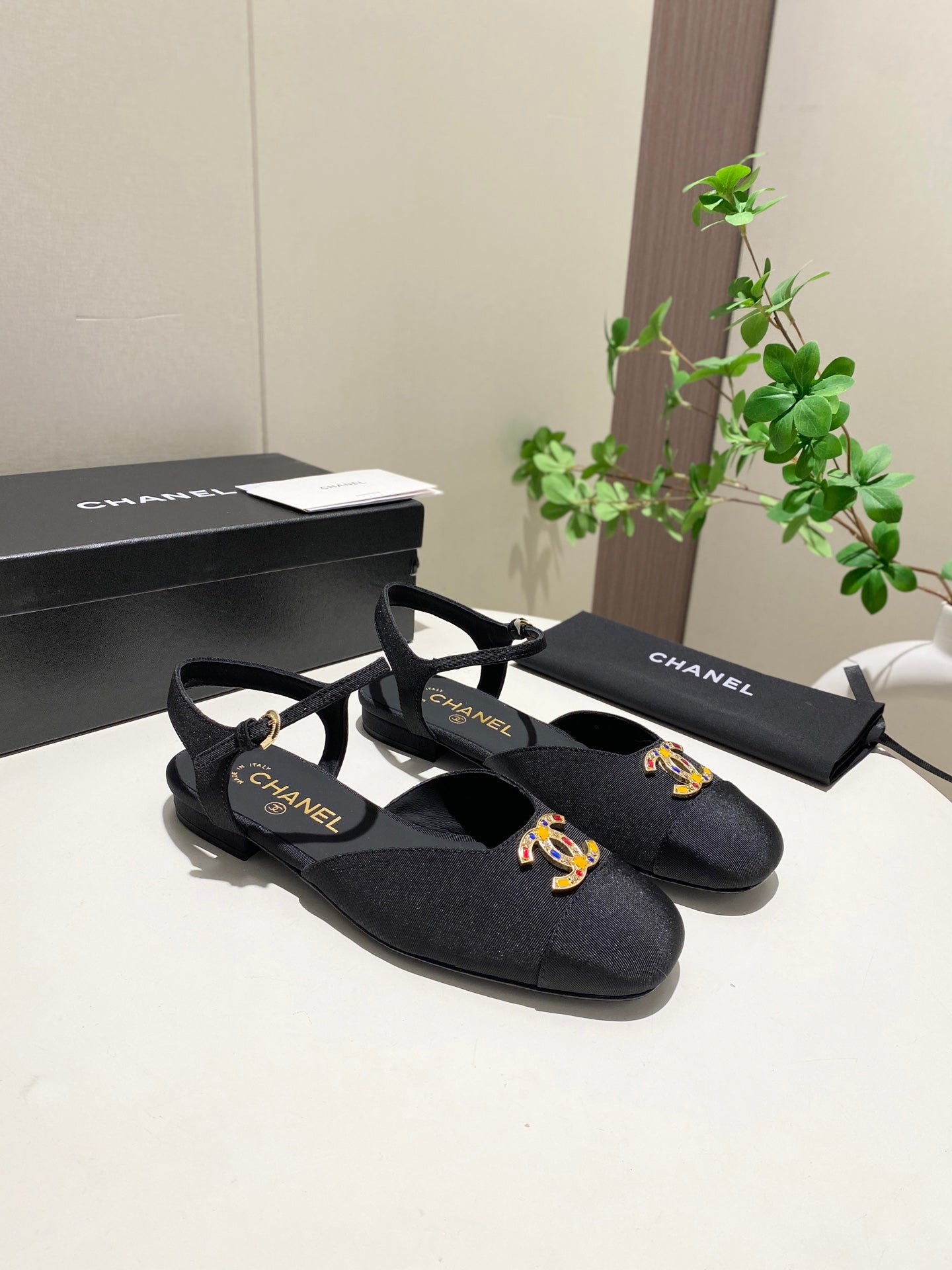 CC 25P Colorful Double Buckle Mary Jane Sandals Black Frabic 466988