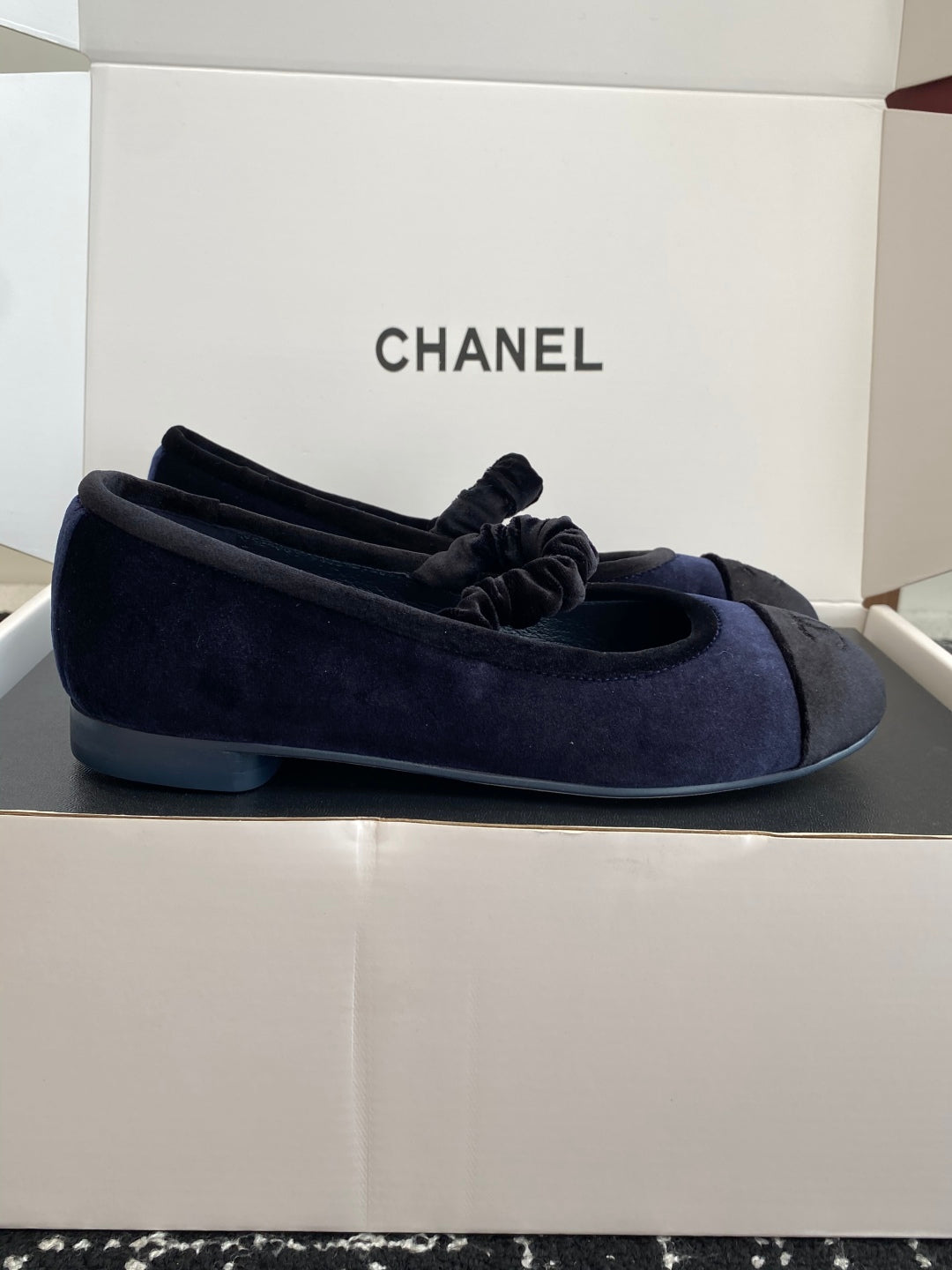 CC 25SS Embroidered Double C logo Mary Janes Blue Suede 473426