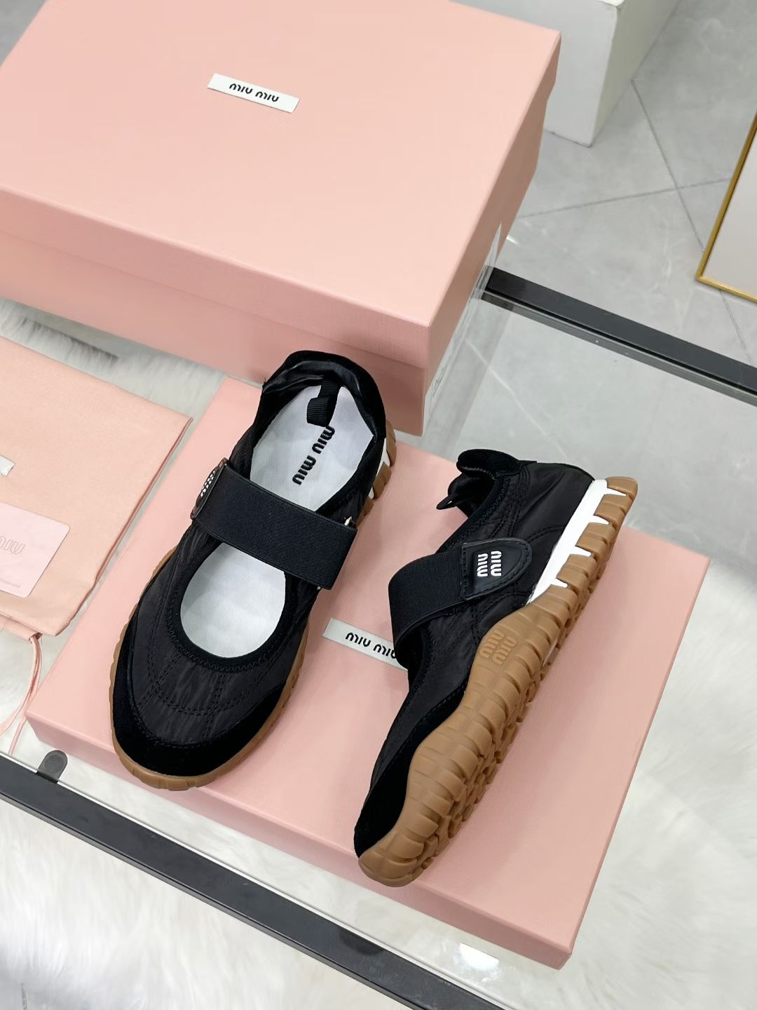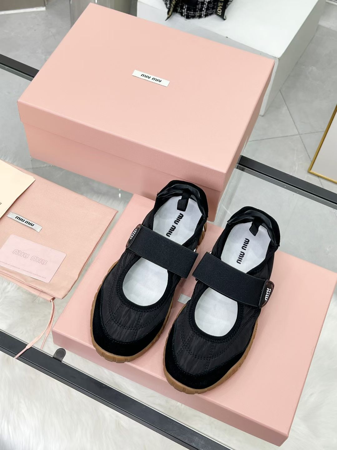 Miu Tyre Ballerina Shoes Black Suede Fabric 456339