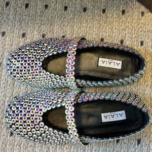 ALAIA MARY JANE SHOES IN BLACK LAMBKIN ATTACH RHINSTONES