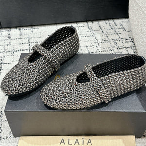 Alaia 25 Laminated Fishnet Ballet Flats Silver Lambskin 677174