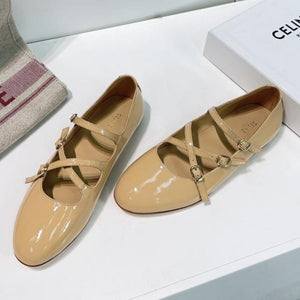 CC 25 Mary Jane Flat Beige Cream Leather with Fabric 239407