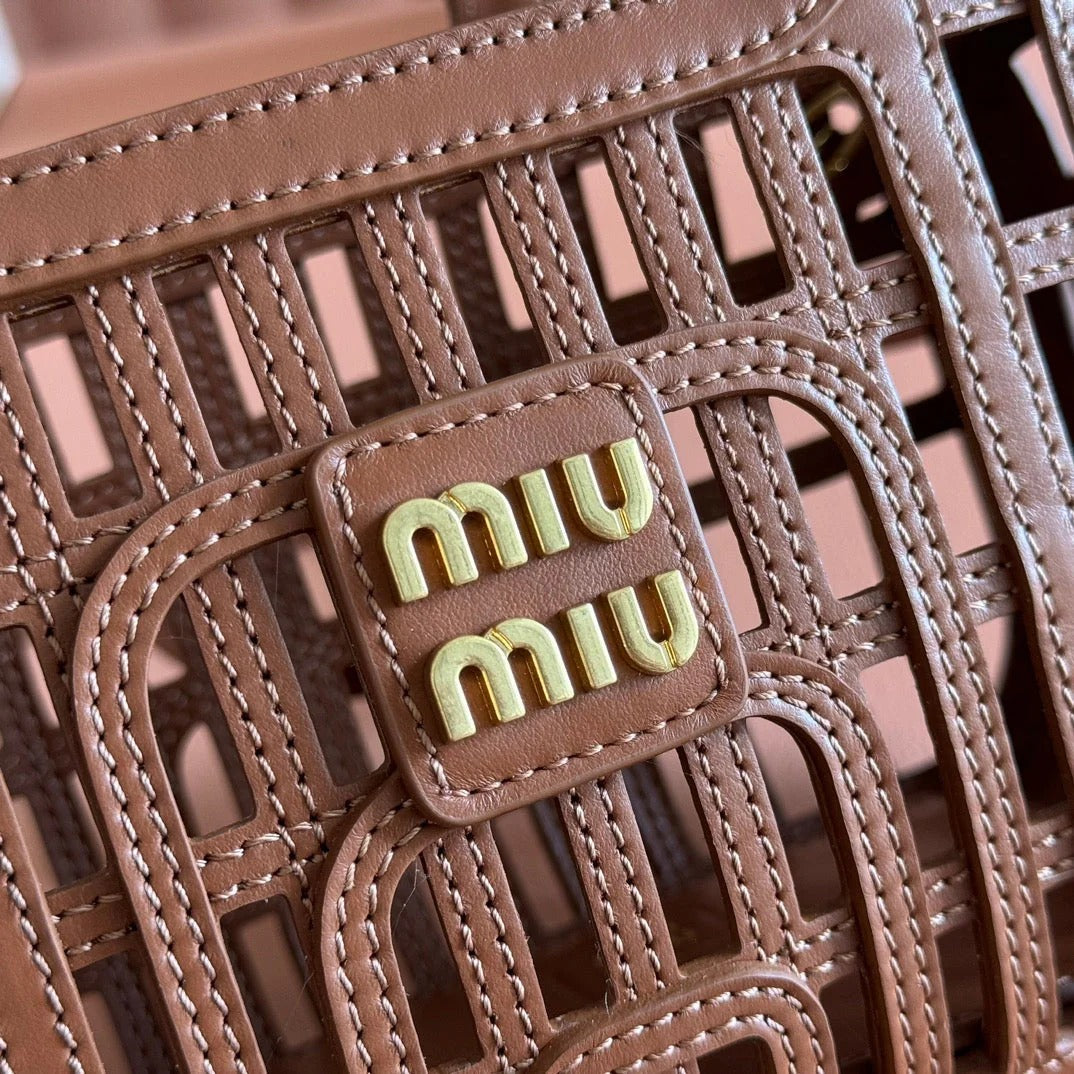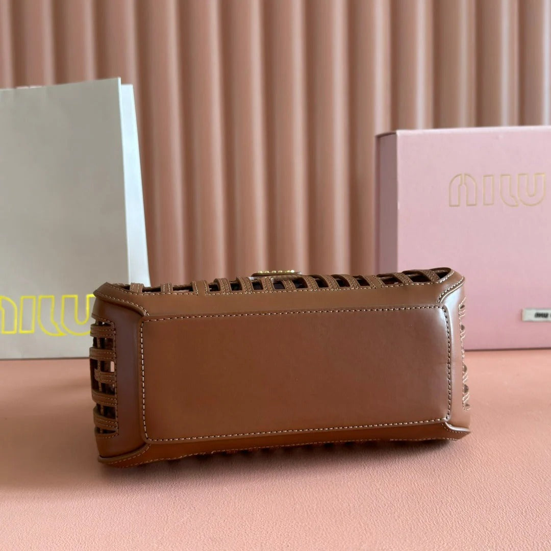 WOVEN HOLLOW BAG 24 IN DARK BROWN CALFSKIN