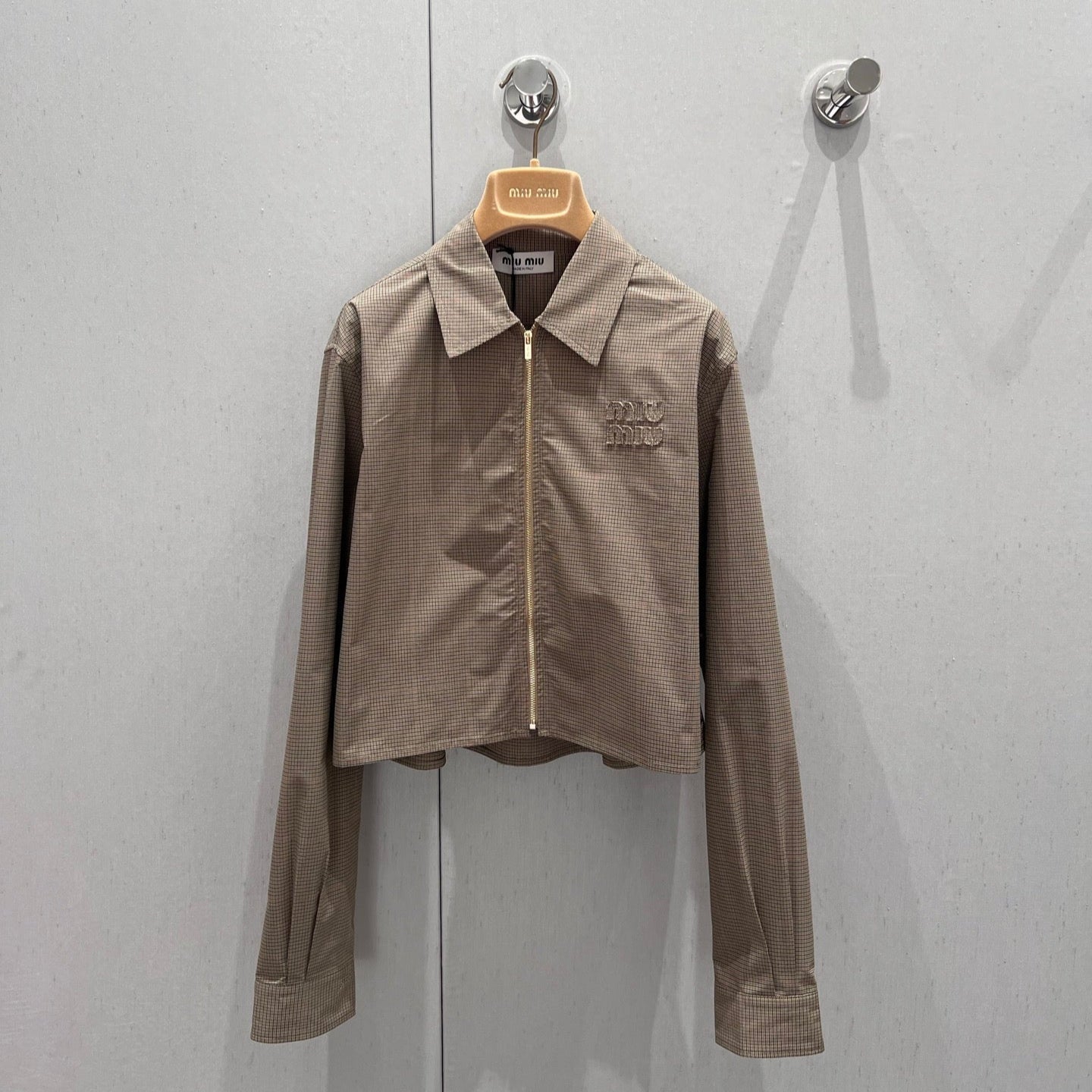 Miu Miu 25 Plaid Lapel Zipper Shirt Brown Cotton 211152