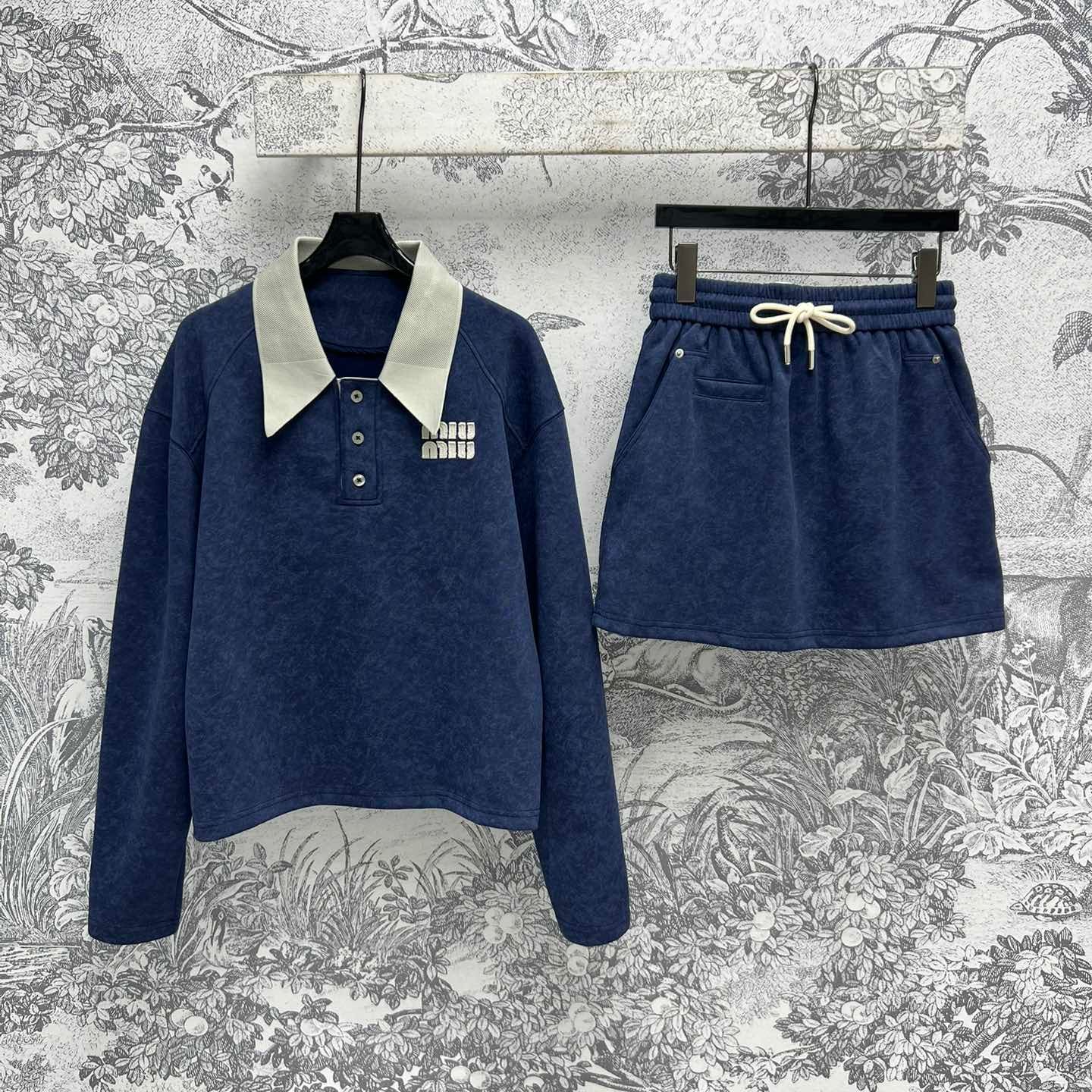 Miu Miu 25 Skirt Suit Blue Cotton