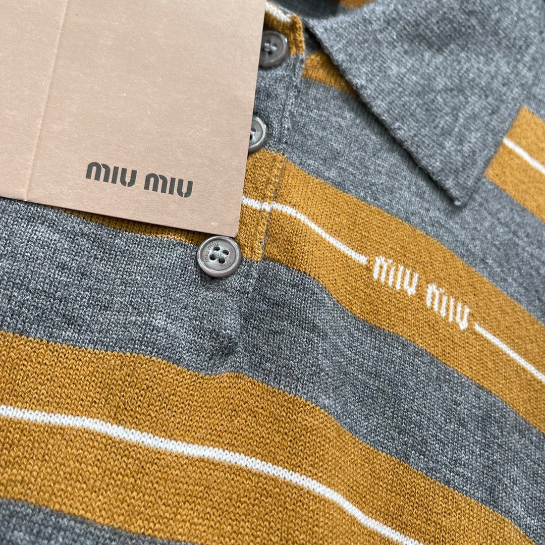 Miumiu 25 Striped Lapel Knitted Short Sleeves Shirt Wool