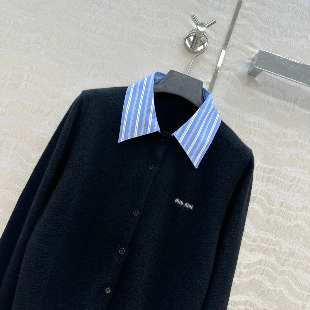 Miumiu Detachable Shirt Cardigan Black Mix Blue Collar and Cashmere