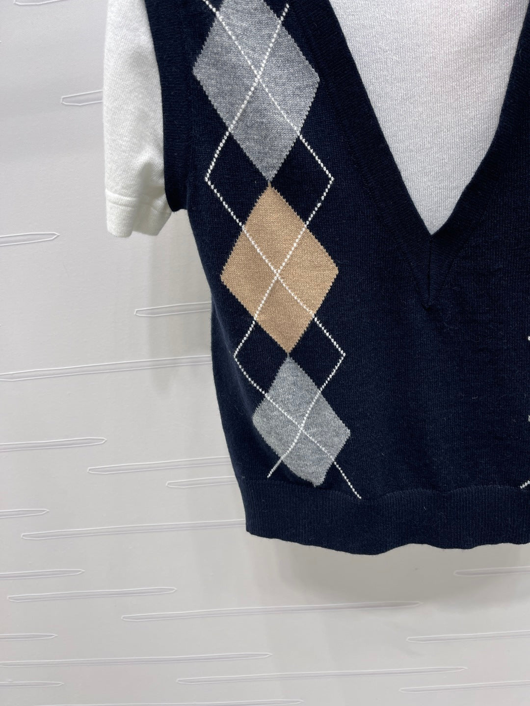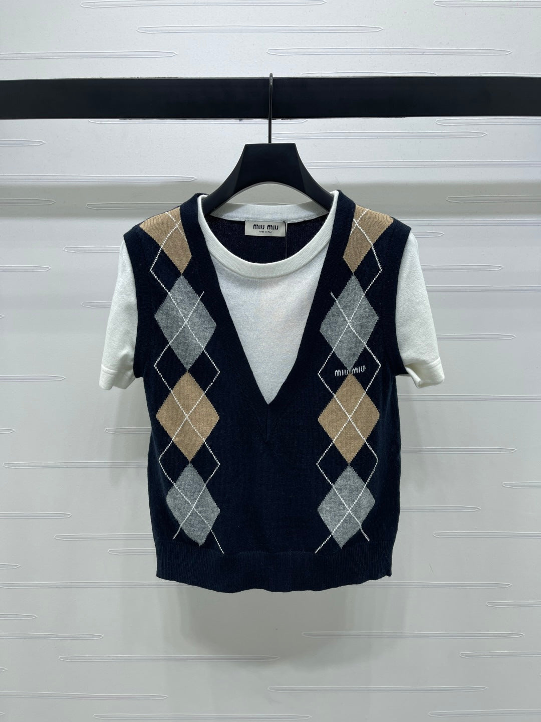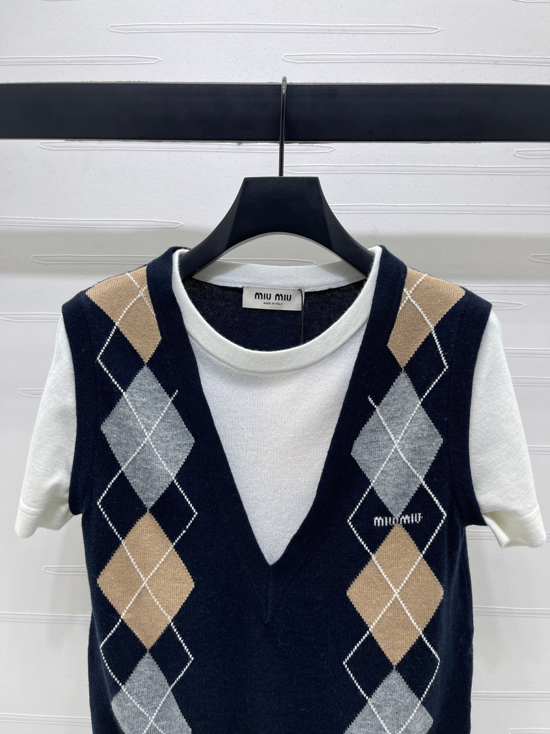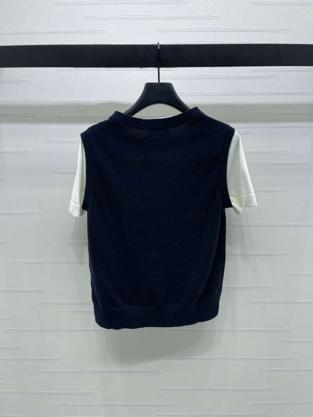 Miumiu Faux Two-Piece Knitted Short-Sleeves Vest Black and White Cashmere