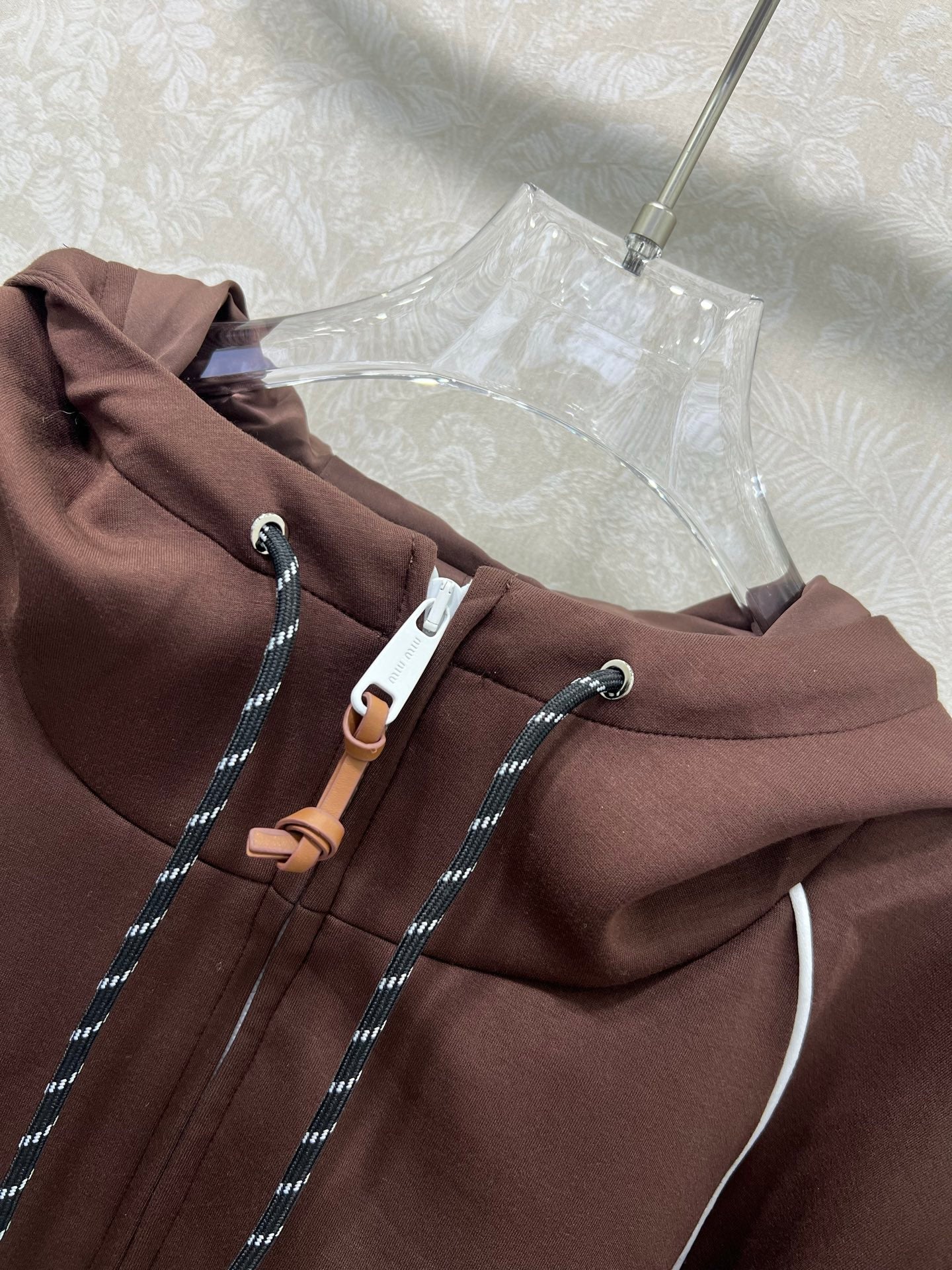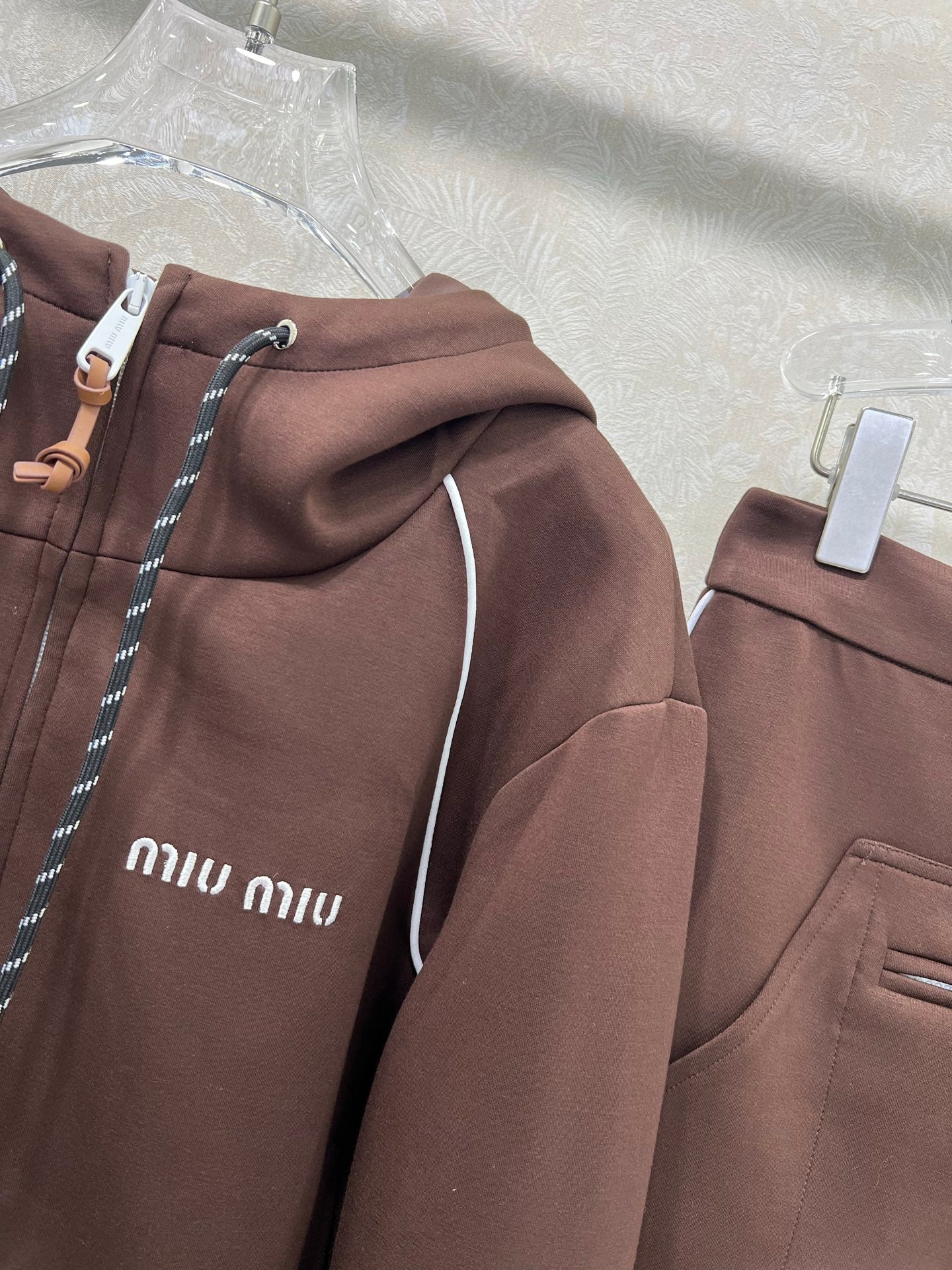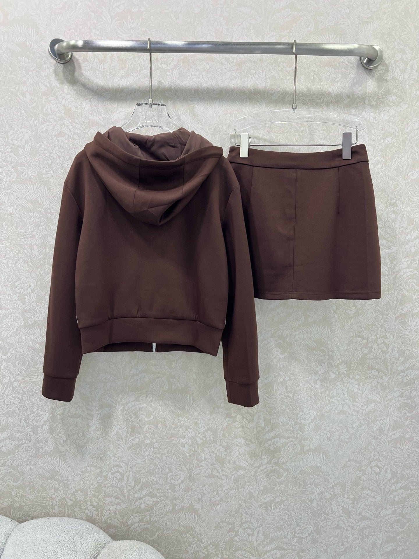 Miumiu Hooded Jacket and Skirt Set Brown Cotton