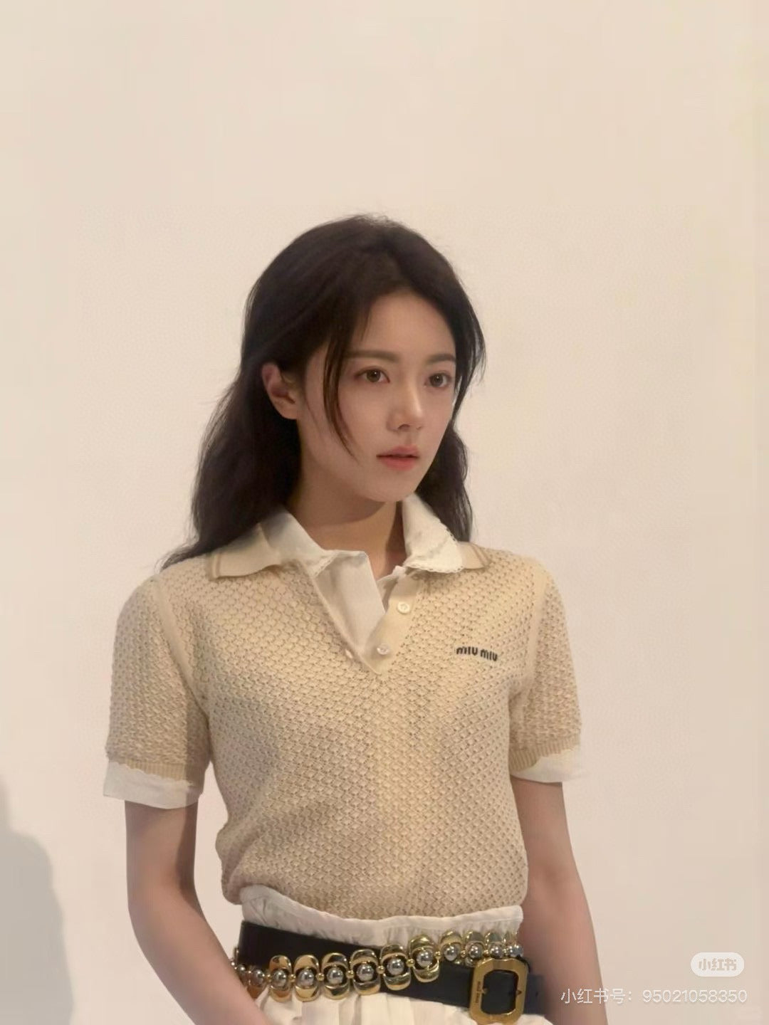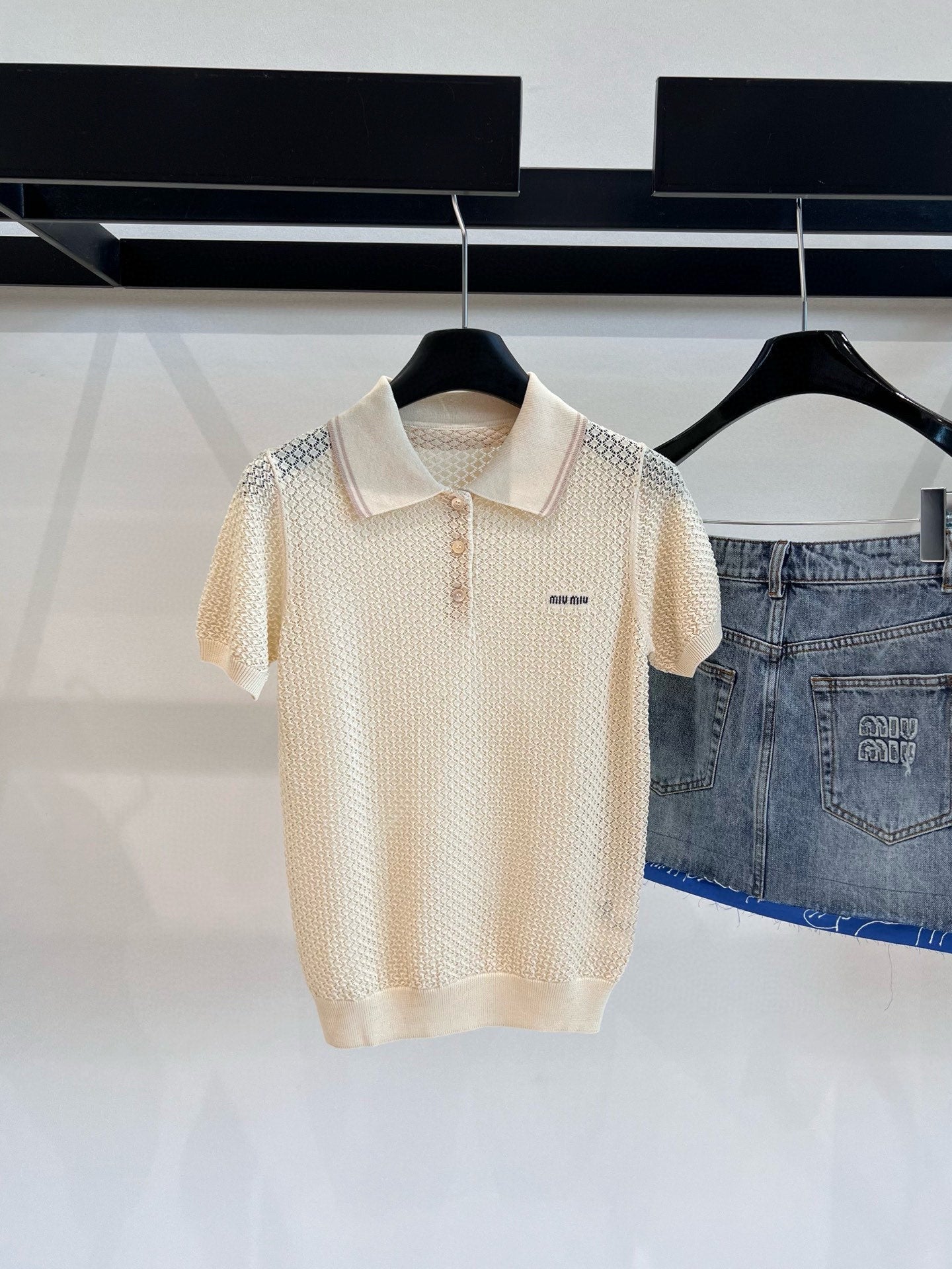 Miumiu Short-Sleeve Knitted Wool Cream Polo Shirt