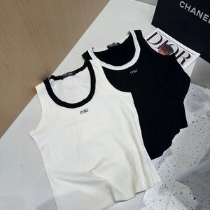 TANK TOP 615176 IN BLACK COTTON RIBBED WHITE TRIM