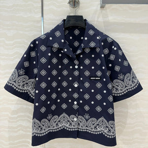 MIUMIU MIDNIGHT BLUE SHORT-SLEEVE SHIRT 261480