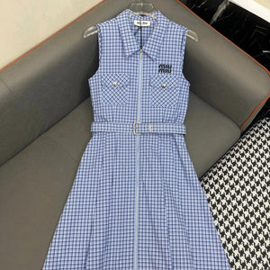 SLEEVELESS CHECKED DRESS WITH MATCHING BELT