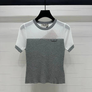 MIUMIU CREW NECK SHORT-SLEEVE SHEER KNIT TOP 274813