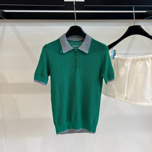 Miumiu Short-Sleeve Polo Shirt Green Cotton