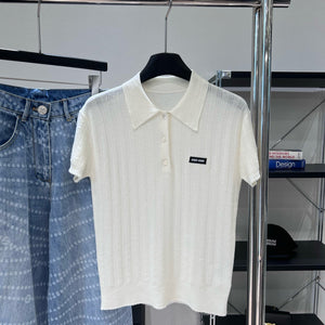 Miumiu Short-Sleeve Knitted Wool Cream Polo Shirt