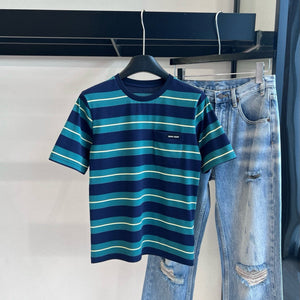 Miumiu Short-Sleeve Stripped T Shirt Green and Dark Blue Cotton