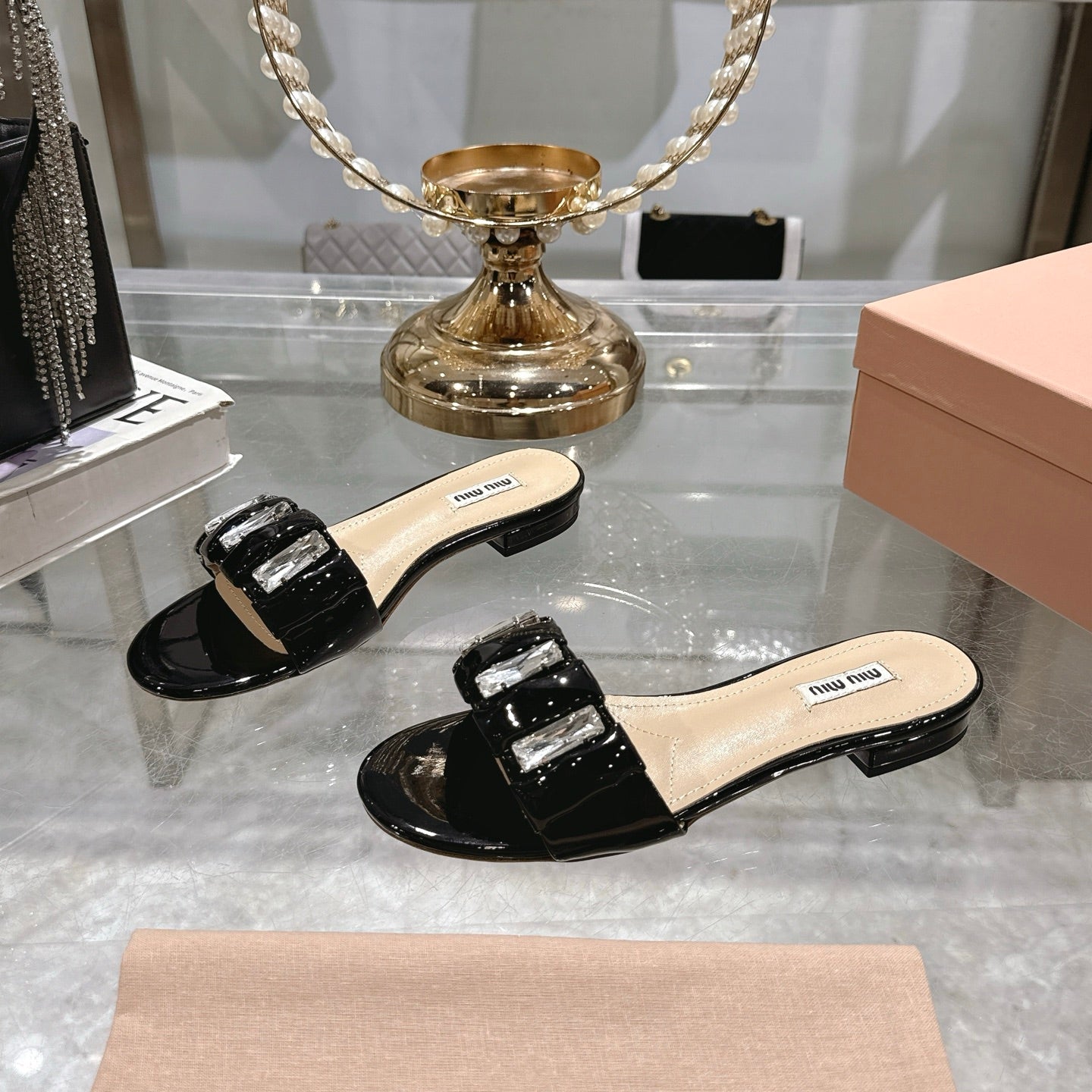 Miu 25C Slippers Black Patent Leather 235322