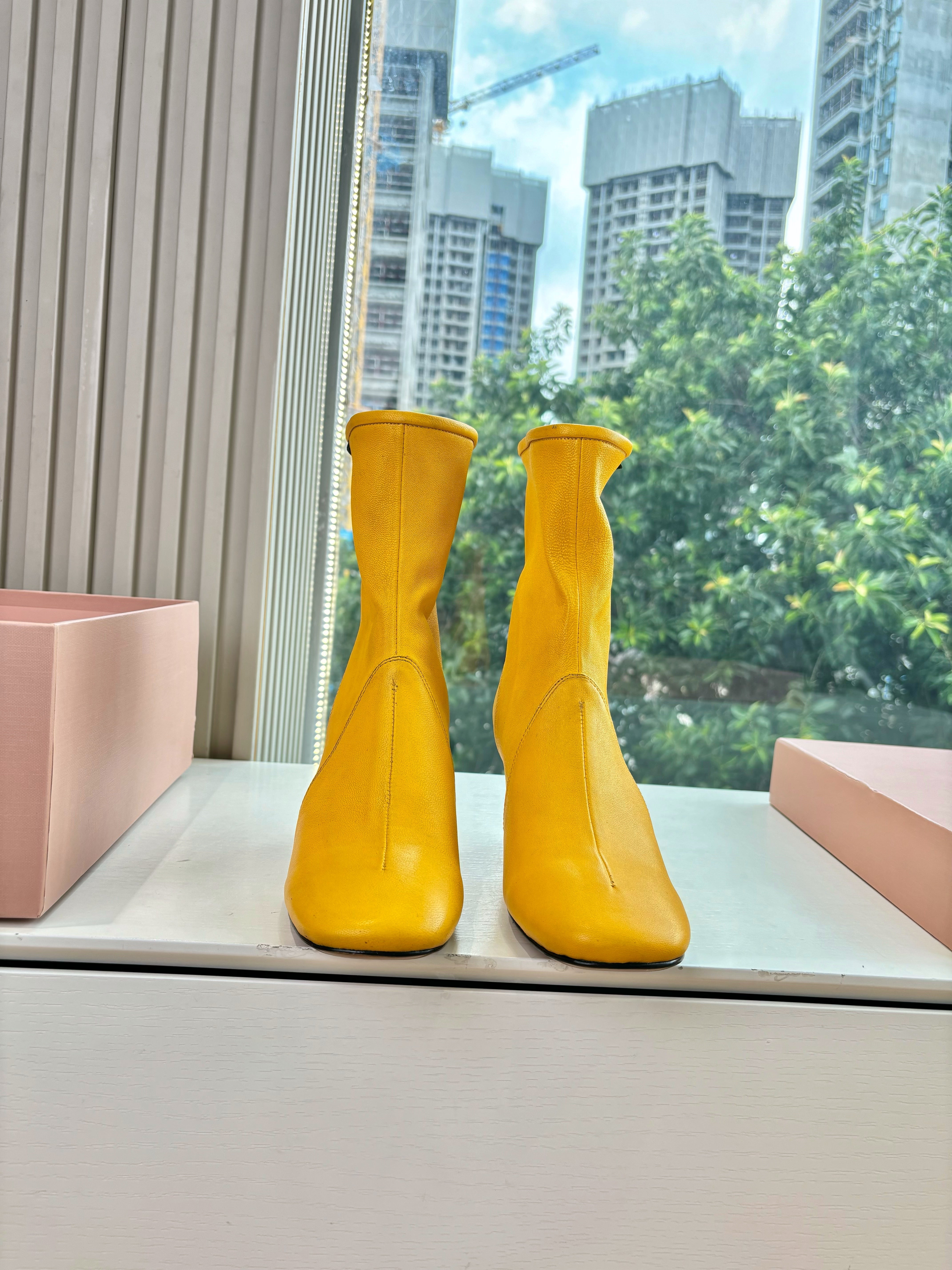Miu Bootie Yellow Nappa Leather 506641