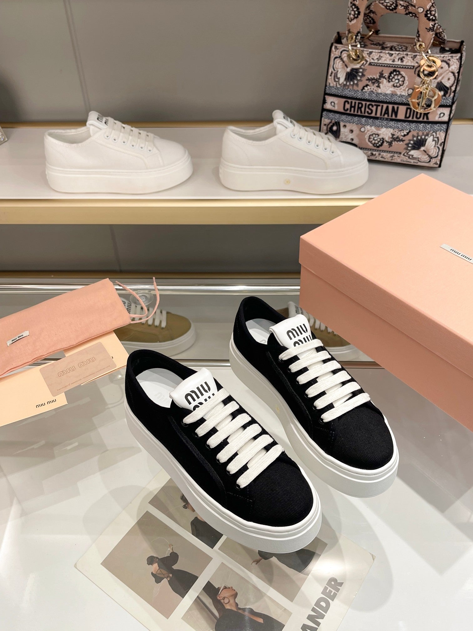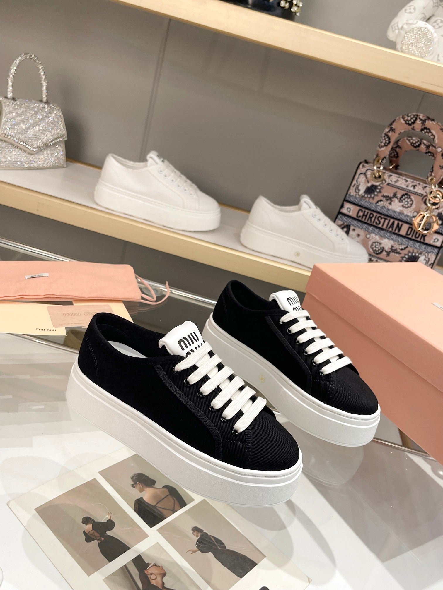 Miu Low Top Skateboard Shoes 50mm Black Canvas 456834