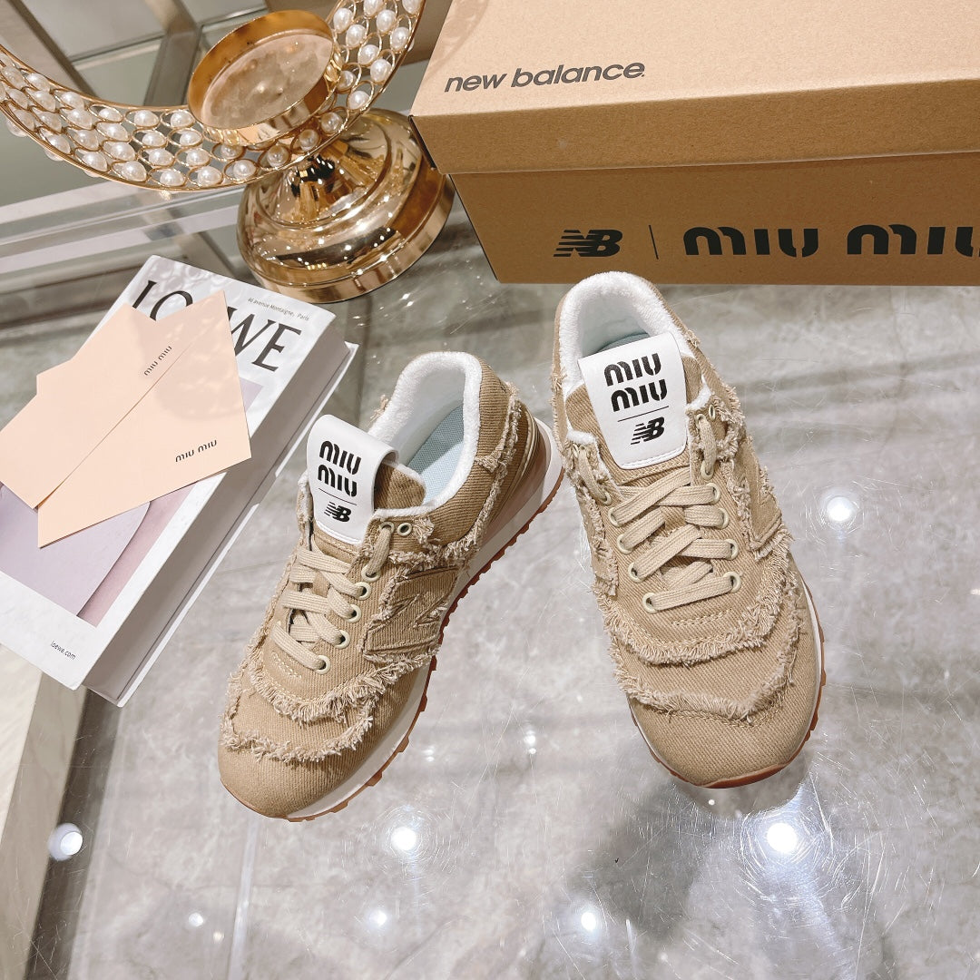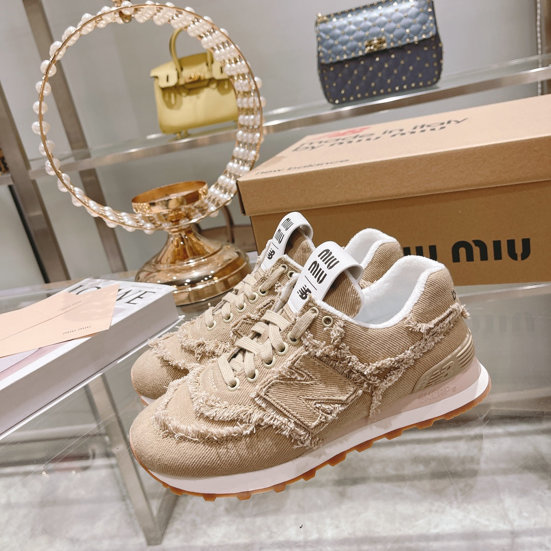 MIU MIU x New Balance 574 Sneakers Colonial Beige Canvas Denim 498914