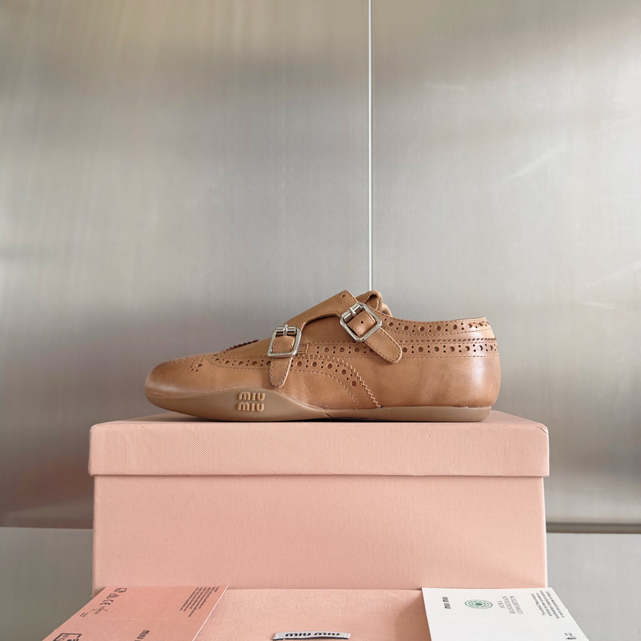 Miu Monk-Strap Thin Sole Caramel Loafers Leather 509752