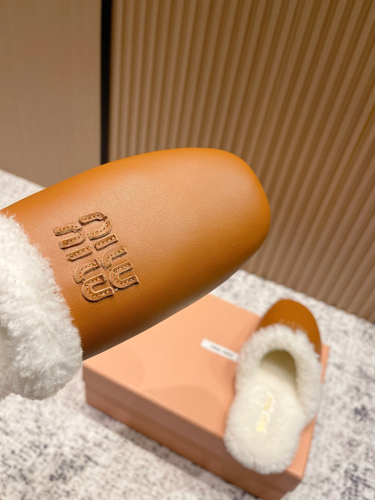 Miu Shearling-Lined Mules Brown Cowhide 481433