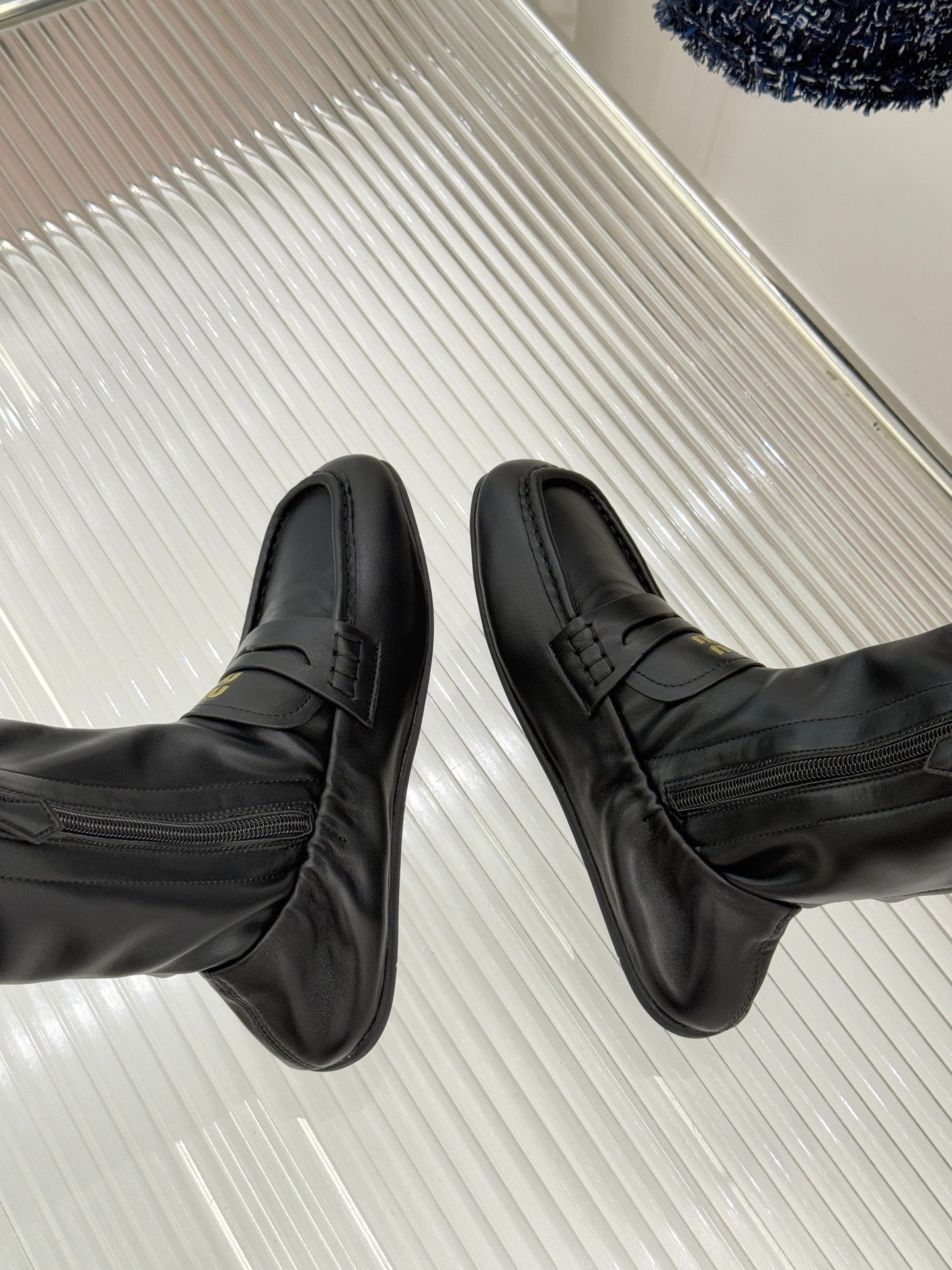 MiuMiu 25 loafer stretch boots black calfskin 517335
