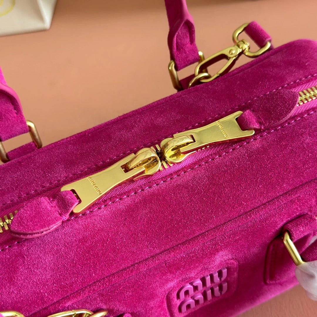 ARCADIE BAG 27 IN FUCHSIA SUEDE GOLD HARDWARE