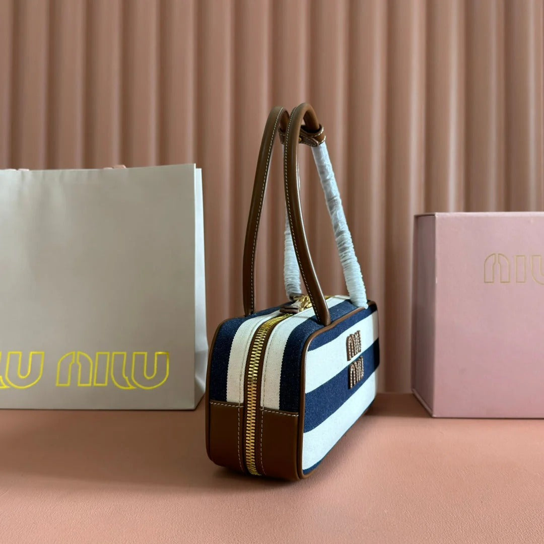BEAU BAG 28 BLUE AND BEIGE STRIPES IN CANVAS AND CALFSKIN
