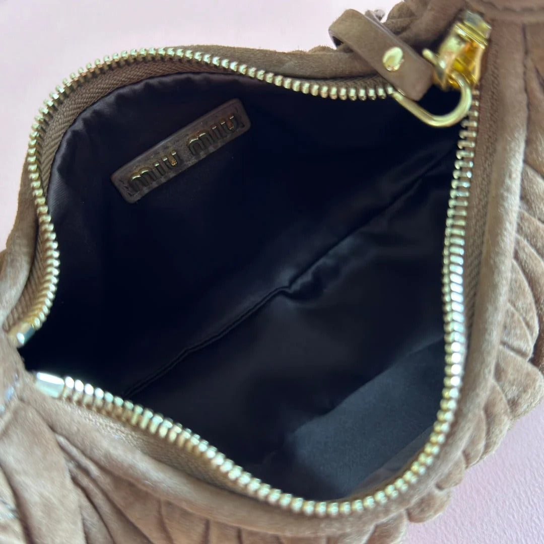 MIU MIU SUEDE HANDBAG 23 DARK BROWN
