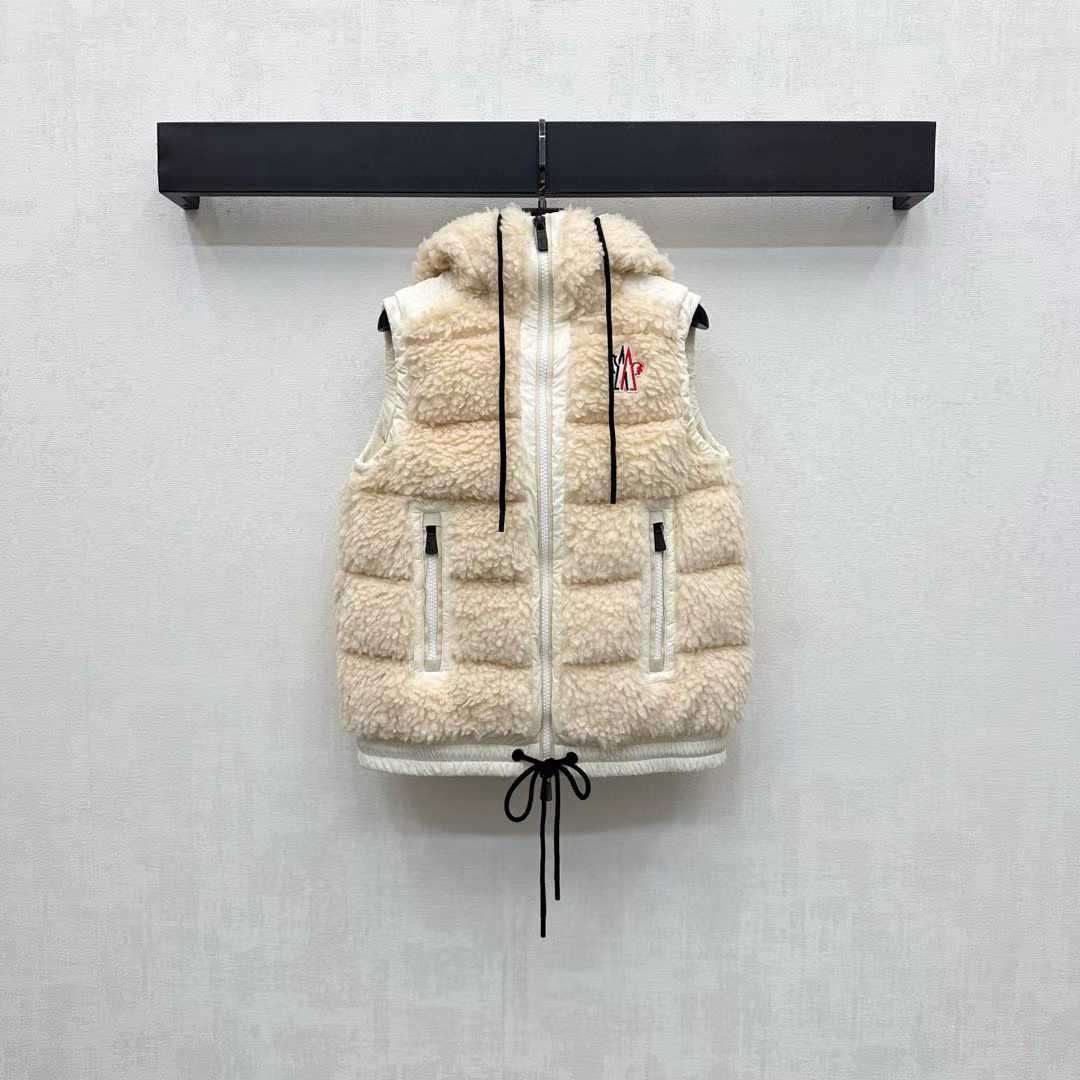 Moncle 25 Teddy Plush Down Vest in Beige