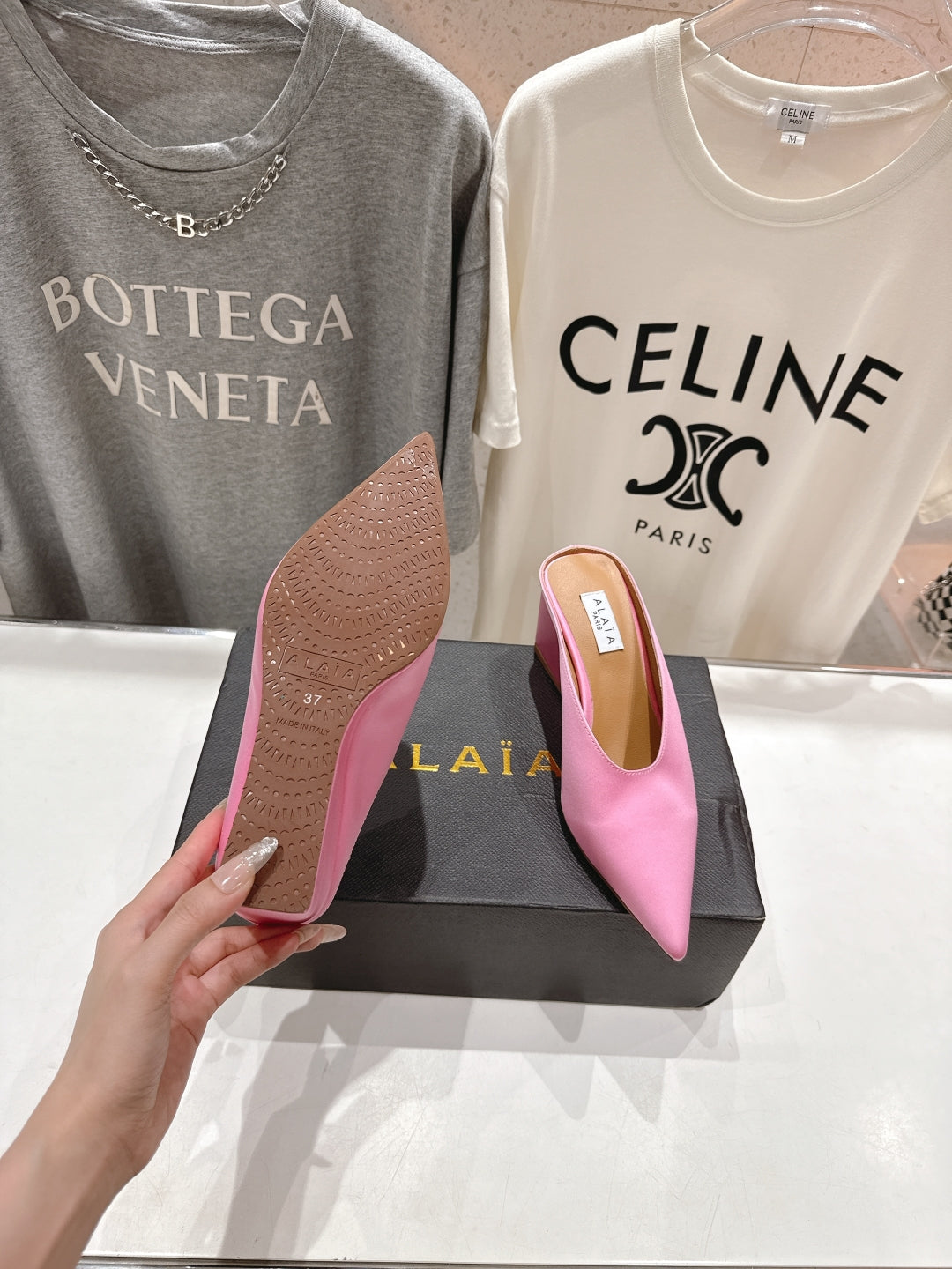 Alaia 25 Cube Wedge Mules Pink Silk Sheepskin 300082