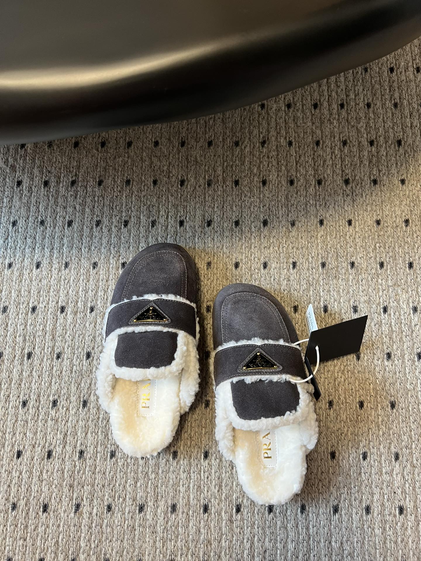 Pra Slippers Muted Gray Suede & Shearling 478564