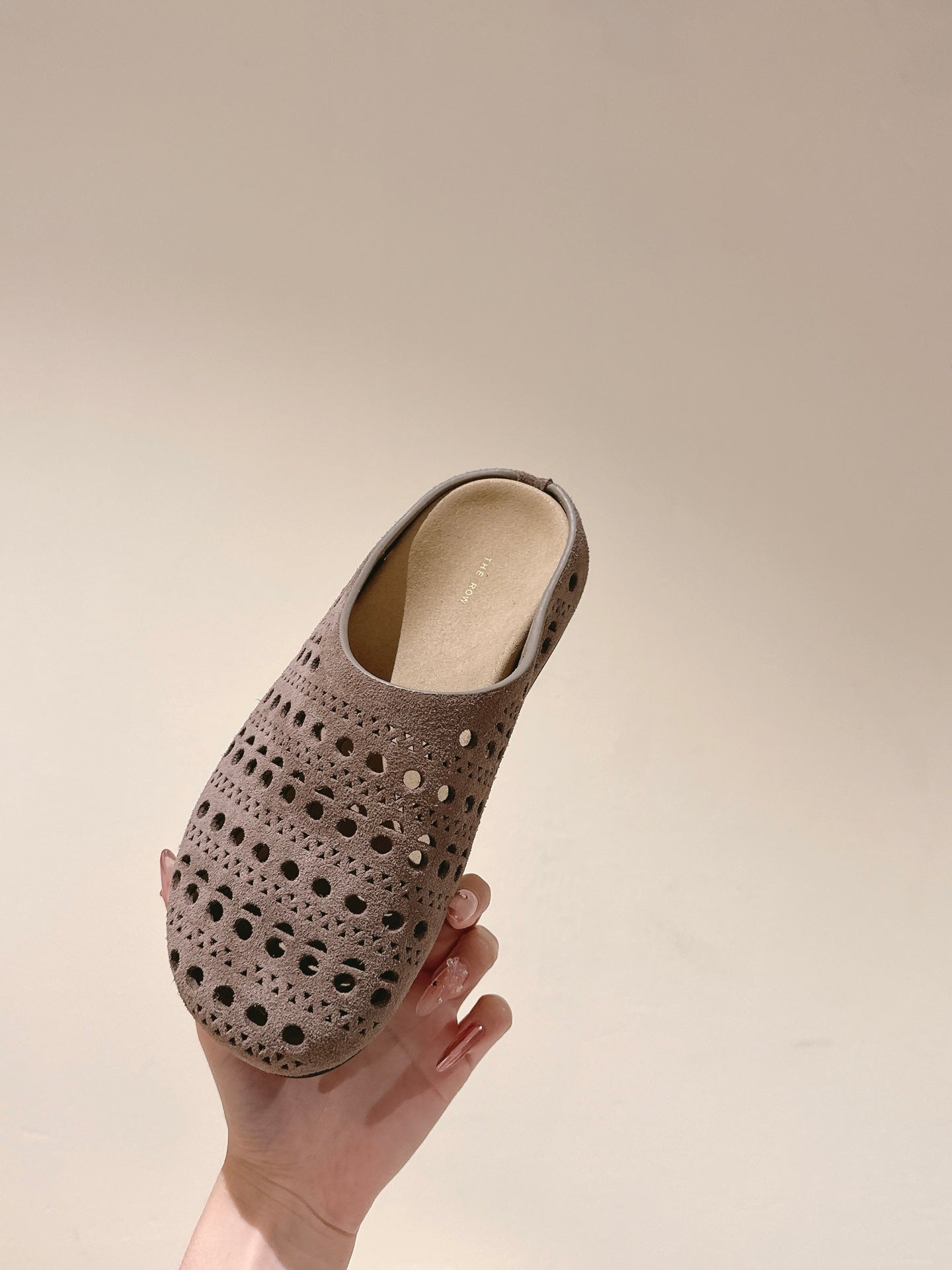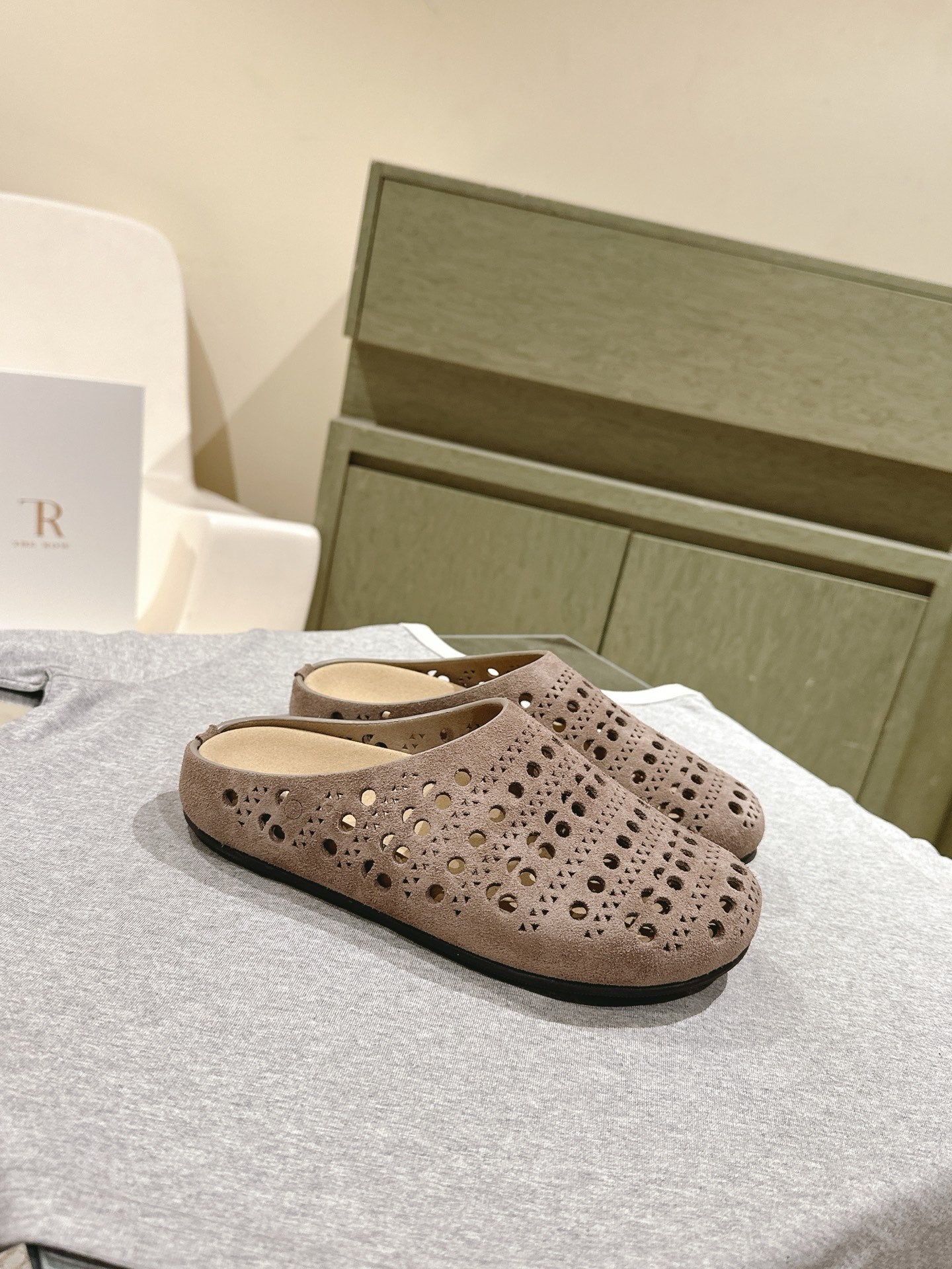 The Row 25ss Perforated Mule 20mm Taupe Suede 451270