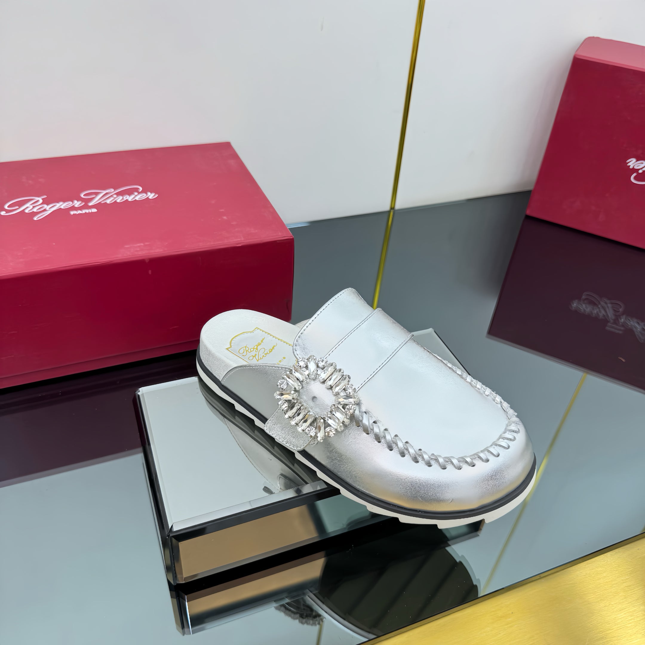 Viv 25 Birkenstock Mules Silver Cowhide 250499