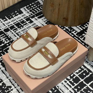 Miu 25C Sneaker Mules Colonial Beige Demin Fabric 235319