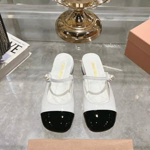 Miu 25C Flat Mule Cream Patent Leather 235308