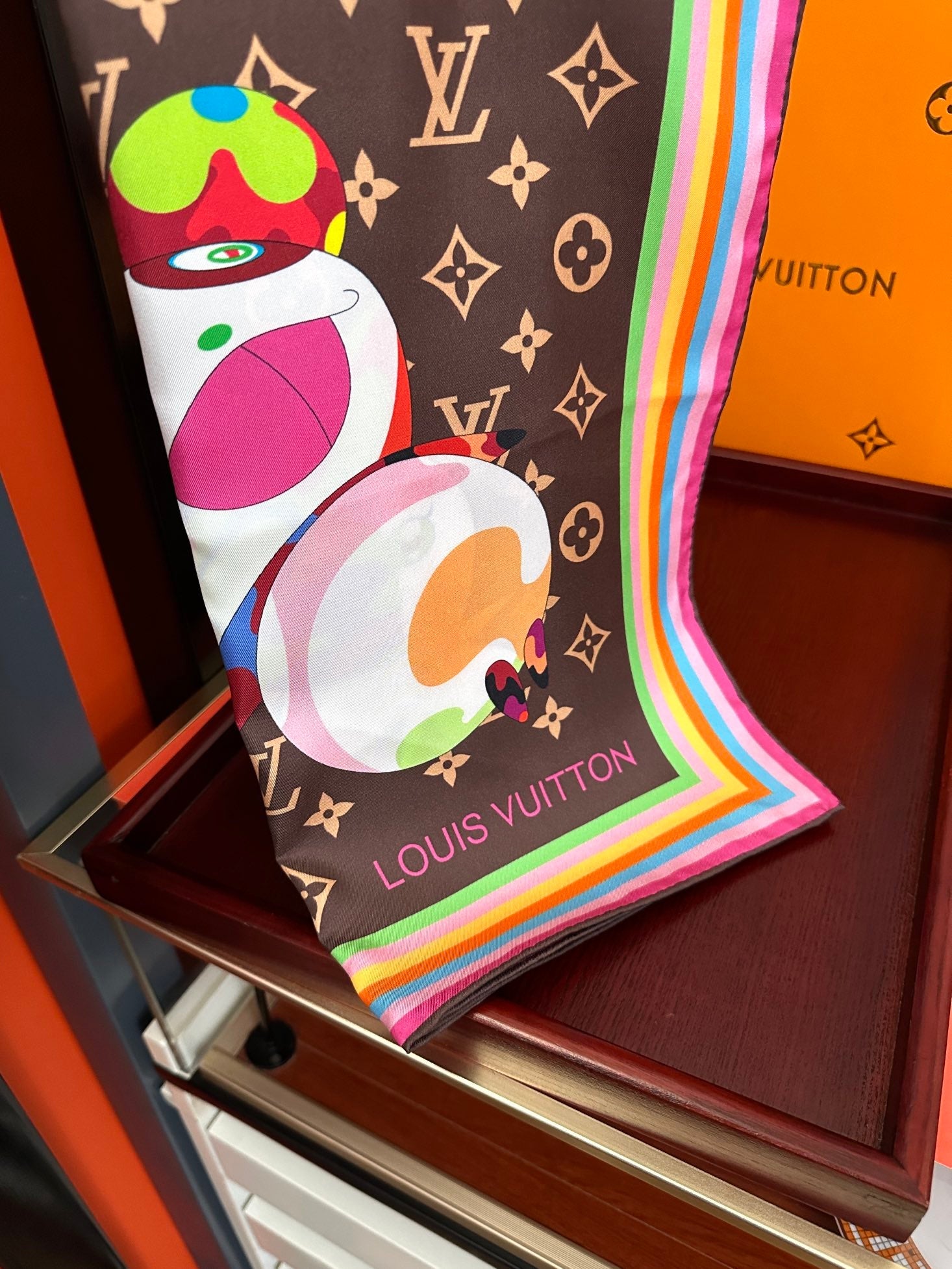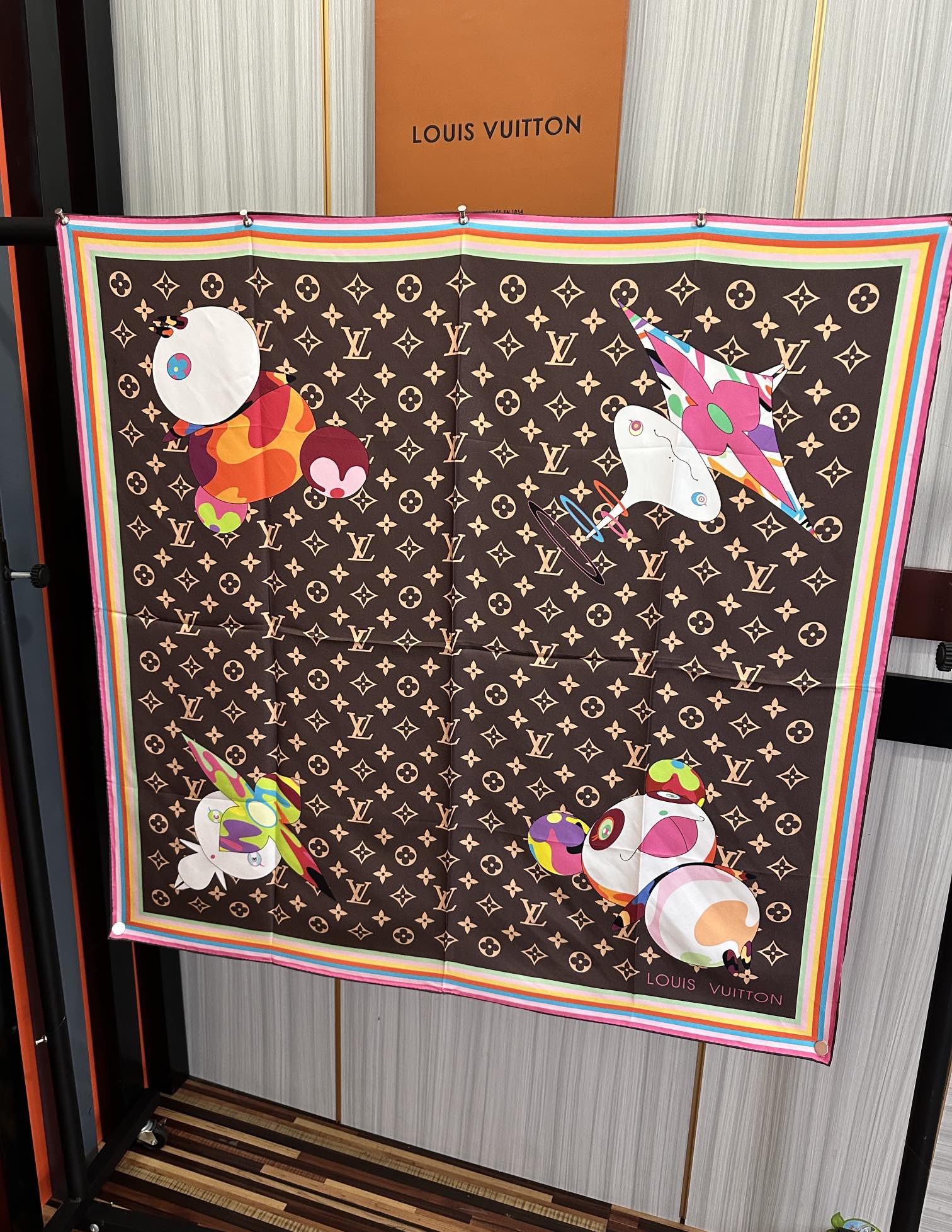 LV Double-Sided Square Scarf 90cm Dark Brown Silk 839685