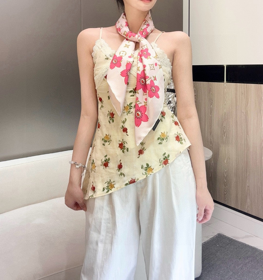 LV x TM MONOGRAM CHERRY BLOSSOM DOUBLE-SIDED PINK SILK SCARF 839486