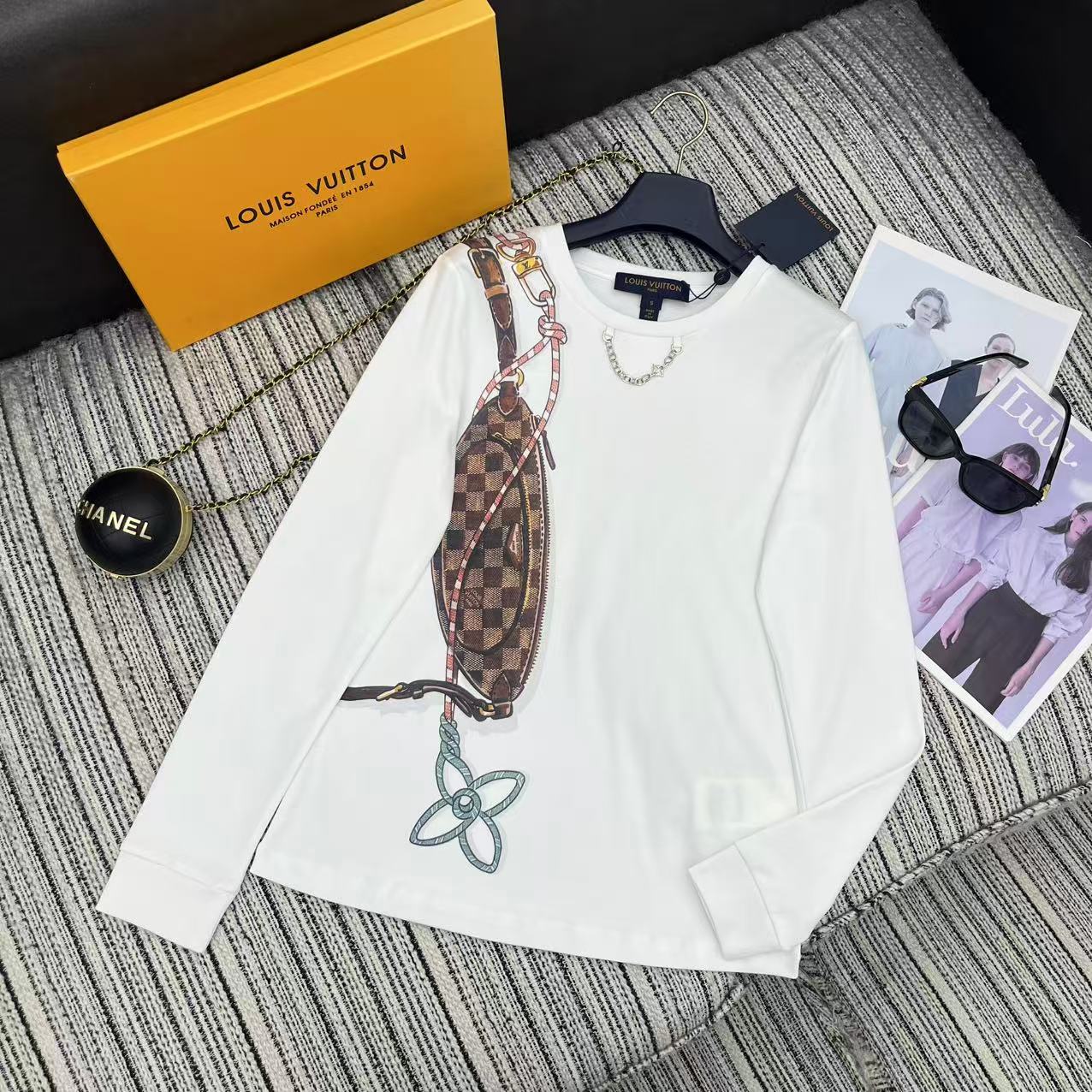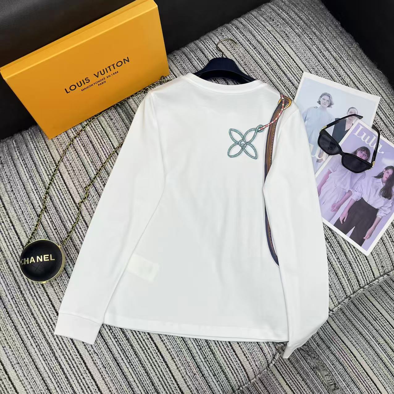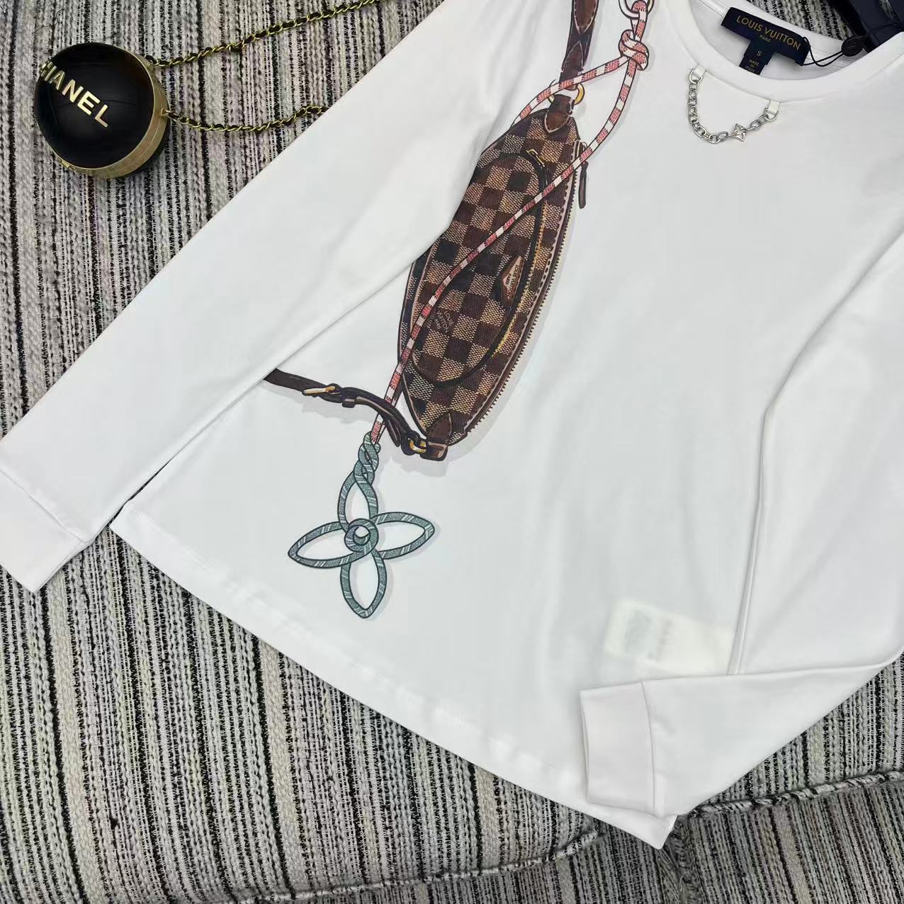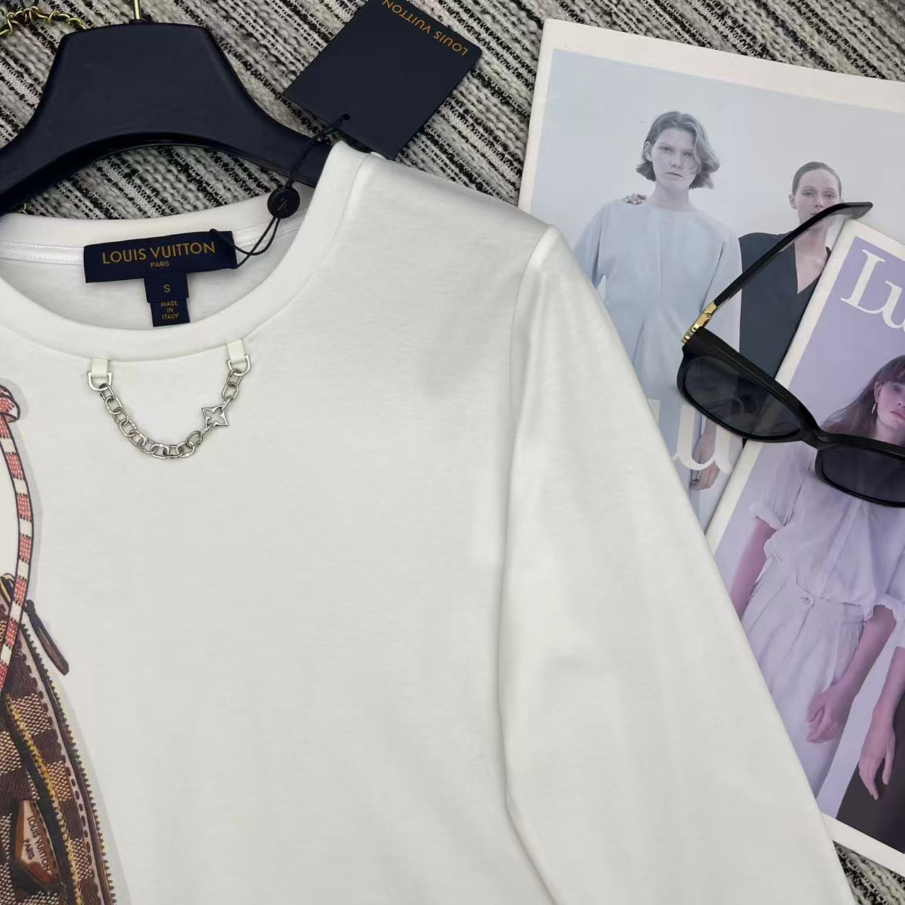 LV 25Ss Monogram 3D Crossbody Bag Metal Chain White Cotton Long-Sleeve Shirt